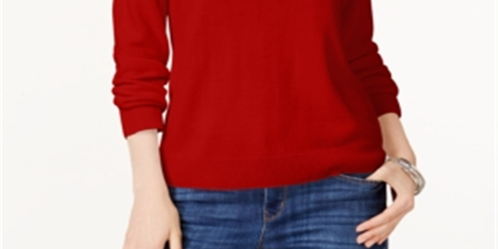 Karen Scott Women's Solid Long Sleeve Crew Neck Top Red Size Petite X-Large