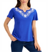 Karen Scott Women's Split Neck Top Blue Size Petite Large