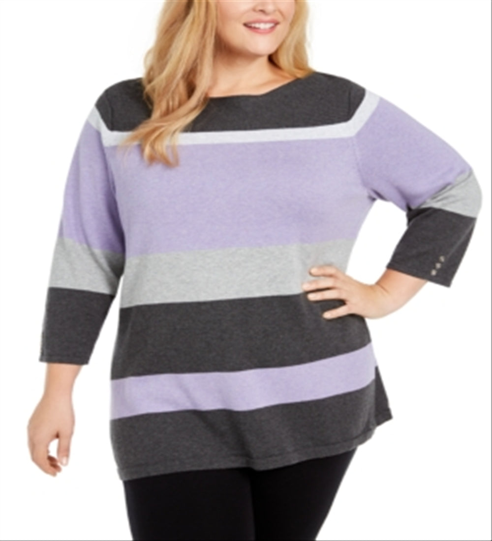 Karen Scott Women's Striped Ballet Neck Cotton Sweater Purple Size 2X