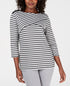 Karen Scott Women's Striped Crossover Top Gray Size Large
