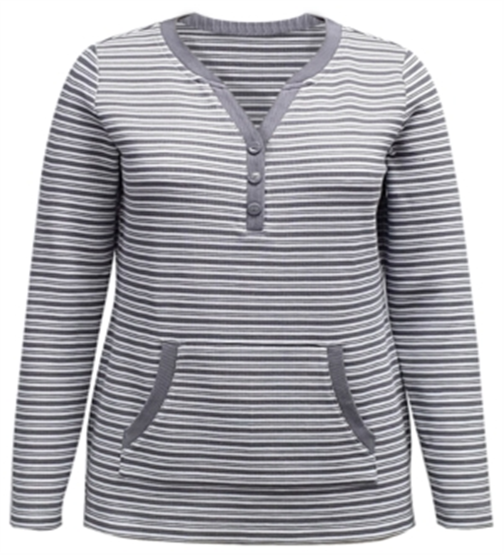 Karen Scott Women's Striped Henley Top Gray Size XL