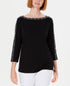 Karen Scott Women's Stud-Trim 3/4-Sleeve Top Black Size Small