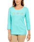 Karen Scott Women's Studded Seashell Top Blue Size Small