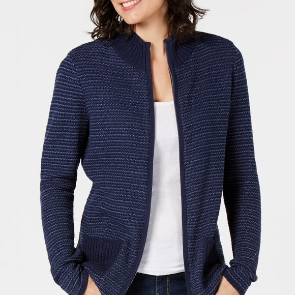 Karen Scott Women's Textured Zip-Front Cardigan Blue Size Large