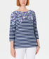 Karen Scott Women's Three-Quarter-Sleeve Printed Top Blue Size X-Small