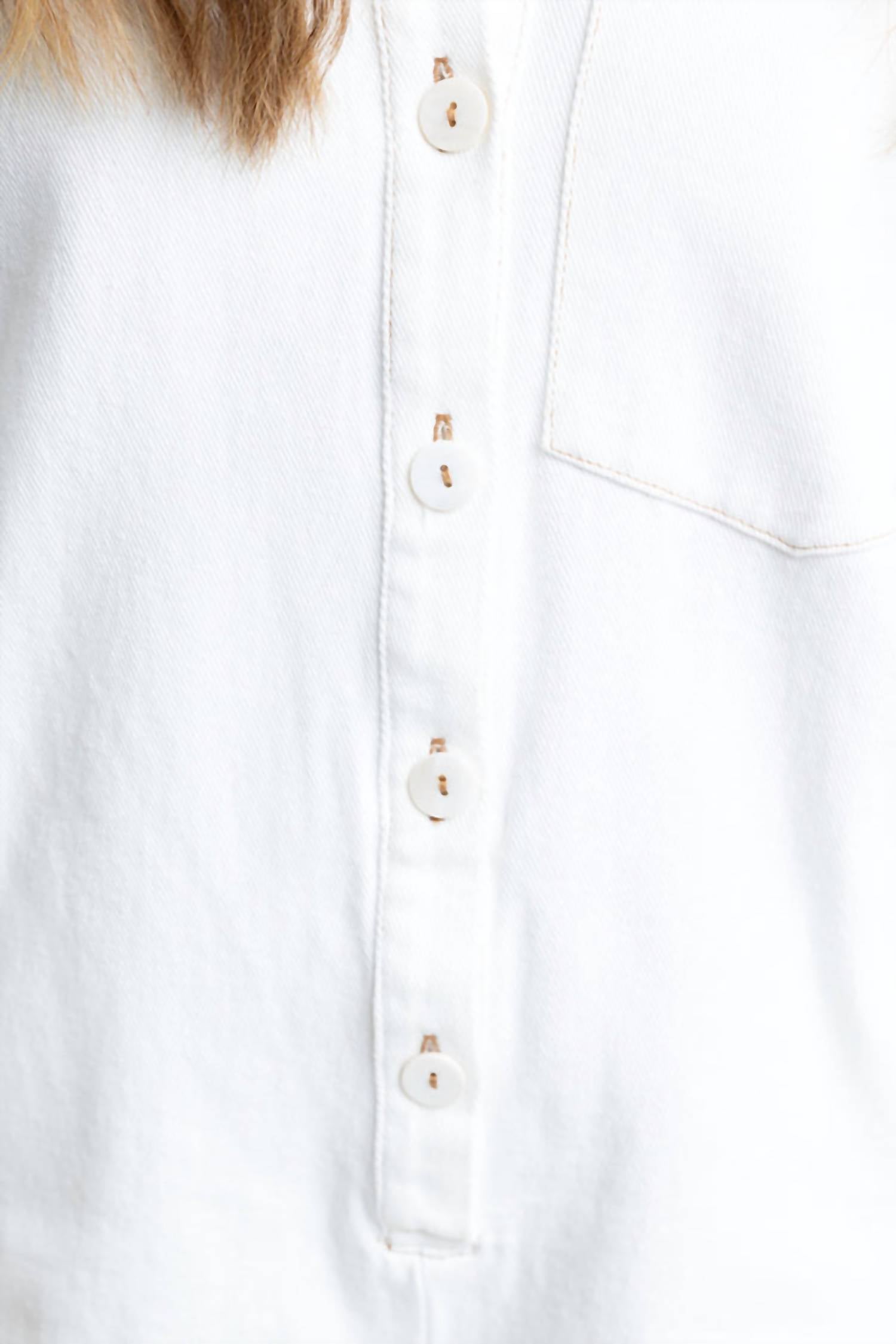 Throw it on and go! The Karlie Denim Playsuit Romper in ivory is a fashionable choice for any summer event or holiday party. Crafted from high-quality denim, this minimalist piece boasts a solid pattern and functional pockets. Closure: Button closure. This stylish romper will easily transition in your wardrobe for various occasions.