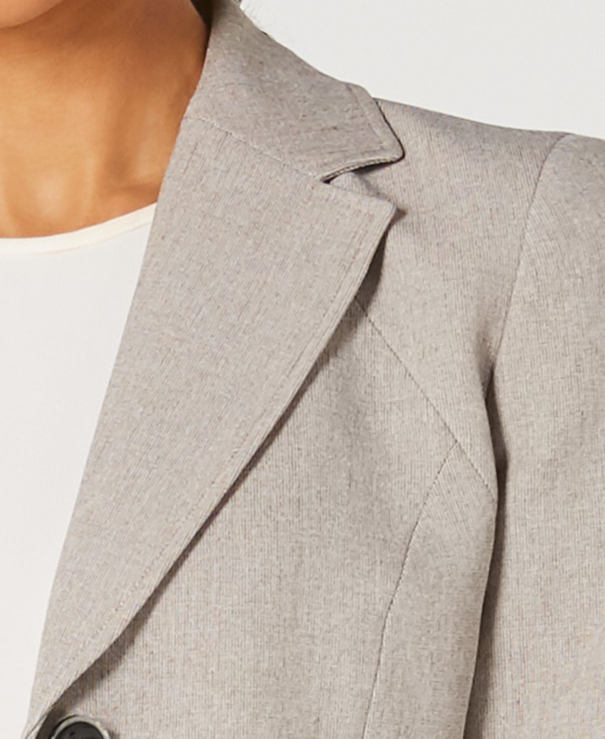 Opt for sleek sophistication for the office with Kasper's melange jacket finished with a classic notched collar and two-button closures.| Approx. length; 23-1/2| Notched collar; two-button closure at front | Shoulder pads| Lined| Polyester/elastane; lining; polyester
