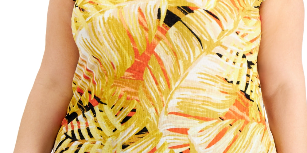 Kasper Women's Printed Cap Sleeve Top Orange Size 1X