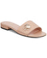 Understated-chic| the Ferry sandals from kate spade new york shine in patent polish with brilliant metallic logo details for sophisticated flash.| 3/4 heel| Round-toe slip-on sandals| Logo hardware detail at strap| Cushioned insole for added comfort| Leather upper; leather lining; leather sole