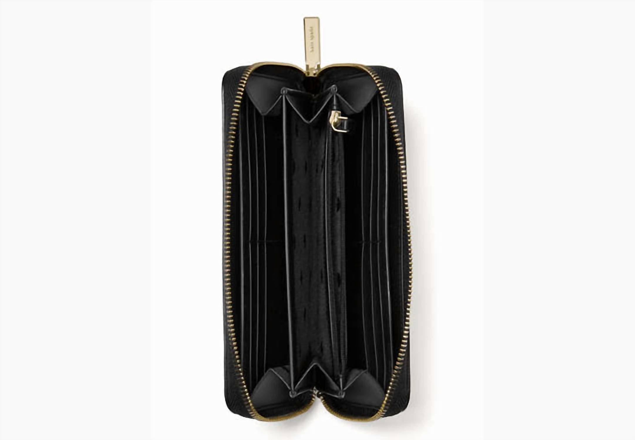 Elevate your accessory game with this sophisticated wallet, meticulously designed to offer a perfect balance of style and functionality. Its sleek appearance and multiple compartments make organizing your cards and cash effortless. This sleek wallet is crafted from printed PVC and adorned with a metal pinmount featuring the iconic spade logo for a touch of playful sophistication. The zip-around design opens to reveal a thoughtfully organized interior with two-way spade jacquard lining. Inside, you’ll find 12 credit card slots, two slip pockets, a zip coin compartment, and three gusseted compartments—plenty of room to keep your essentials in check. A convenient slip pocket on the back provides easy access to frequently used items. 4.13'' h x 7.72''w x 0.87'' d.