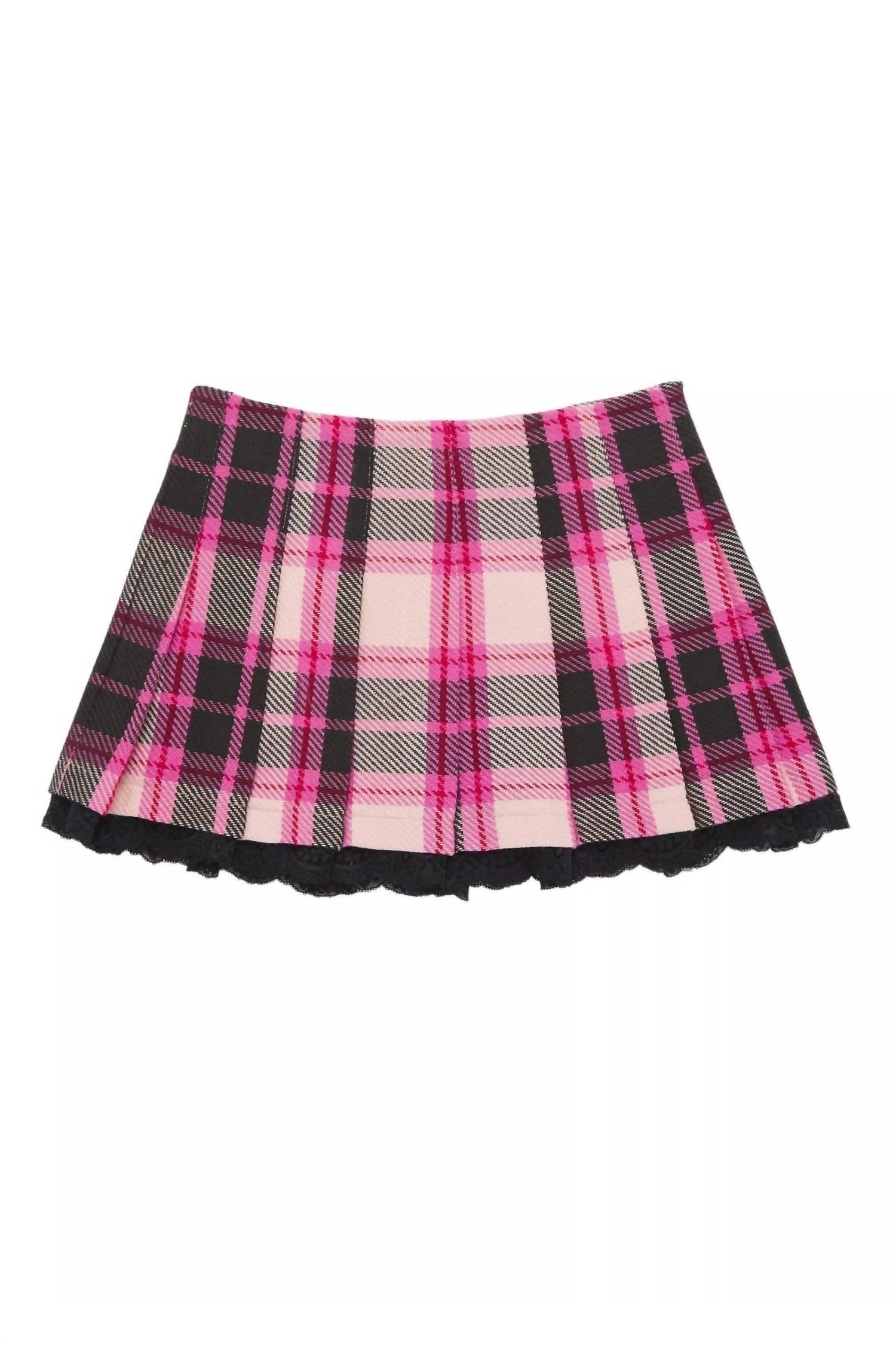 Show just the right amount of leg in this fit flattering mini. Elevate your wardrobe with the Katie J NYC Girl's Elicia Plaid Skirt, a charming mini skirt in a playful multi-color plaid design perfect for spring outings. This skirt is crafted with 65% Polyester, 33% Viscose, and 2% Spandex for durability and comfort, with a 100% Polyester lining. It features pull-on closure with dainty lace edging, capturing the essence of the Y2K trend for girls. Care instructions recommend hand washing and line drying to maintain its vibrancy and shape. Available in tween sizing: SM (7/8), MD (10), LG (12), XL (14).