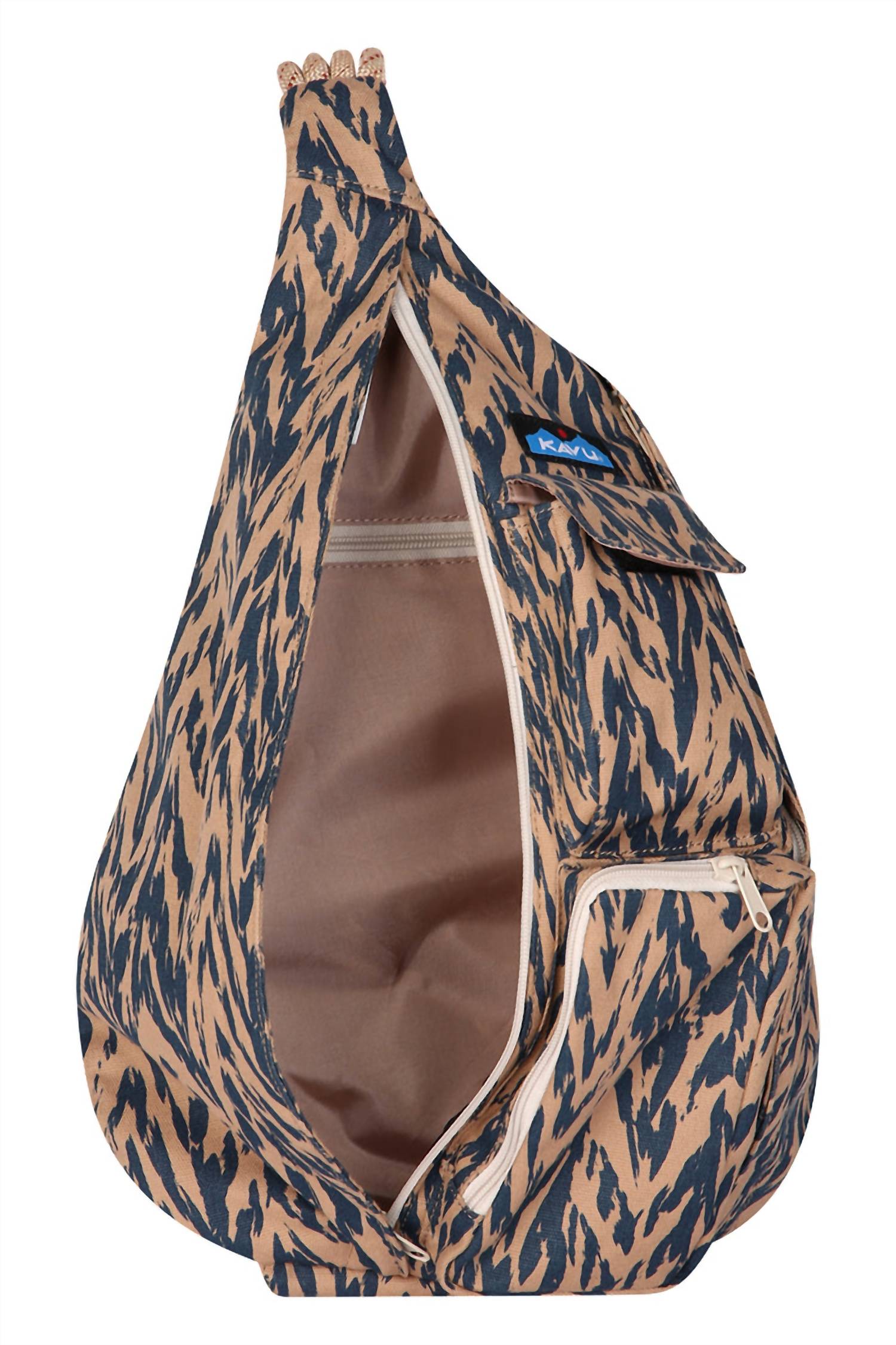 Meet the Rope Bag by KAVU, a perfect blend of functionality and style in vibrant Chevron Shore. This cotton canvas sling features an adjustable rope shoulder strap with a side release buckle for easy wear, along with two vertical zip compartments and two key or cell phone pockets. Dimensions are 20" x 11" x 5" with a crossbody strap adjustable from 22" to 44", making it ideal for various carrying needs. Crafted from 12oz 100% cotton canvas, it weighs in at a lightweight .8 lbs, ensuring comfort throughout the day.