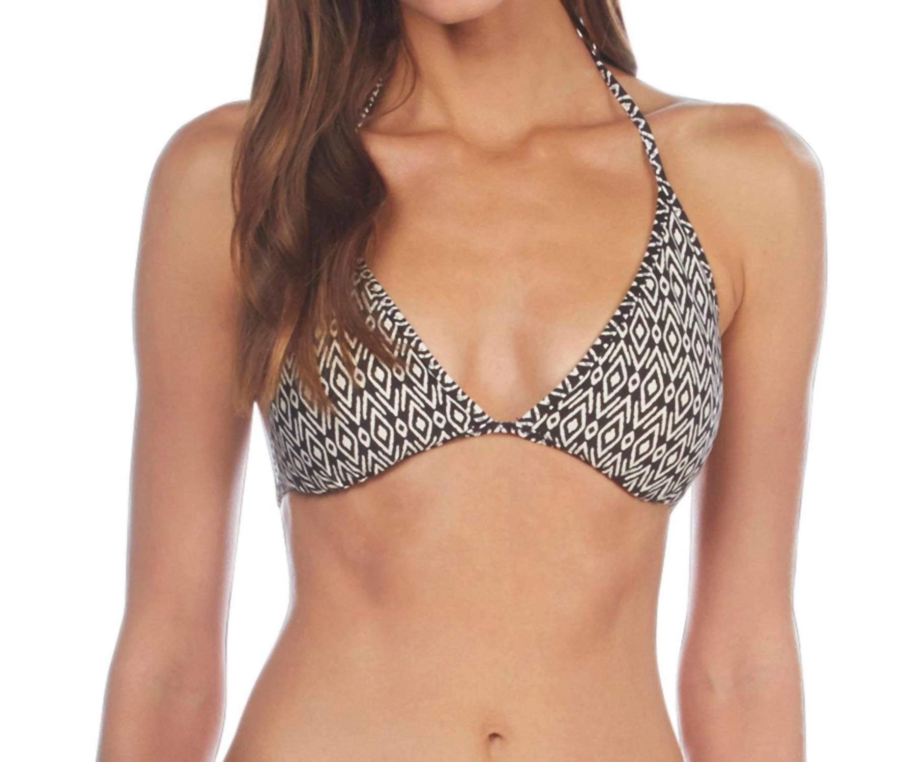 This cute and flattering swimsuit is perfect for making a splash at the pool, lounging on sun-kissed beaches, and staying stylish throughout the upcoming summer season.This Reversible Triangle Bikini Top features a vibrant tribal print and a flattering V-neckline. With an adjustable halter tie and soft cup bra for support, it’s crafted from a high-quality 85% Nylon, 15% Elastane blend. Reversible to a chic tribal pattern, it offers versatile styling options. Consult the size chart for the perfect fit.