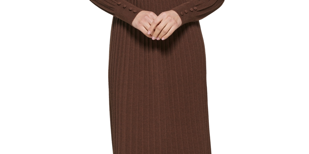 Kensie Women's Pintuck Long Sleeve Sweater Knit Dress Brown Size Medium