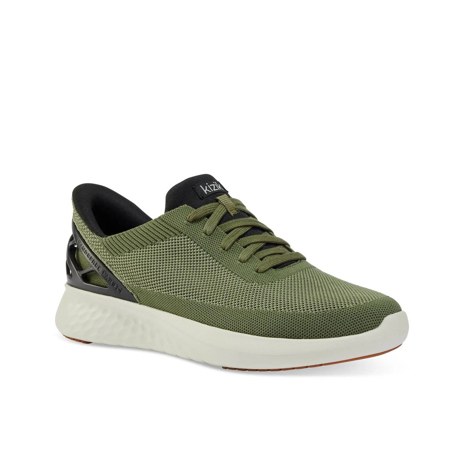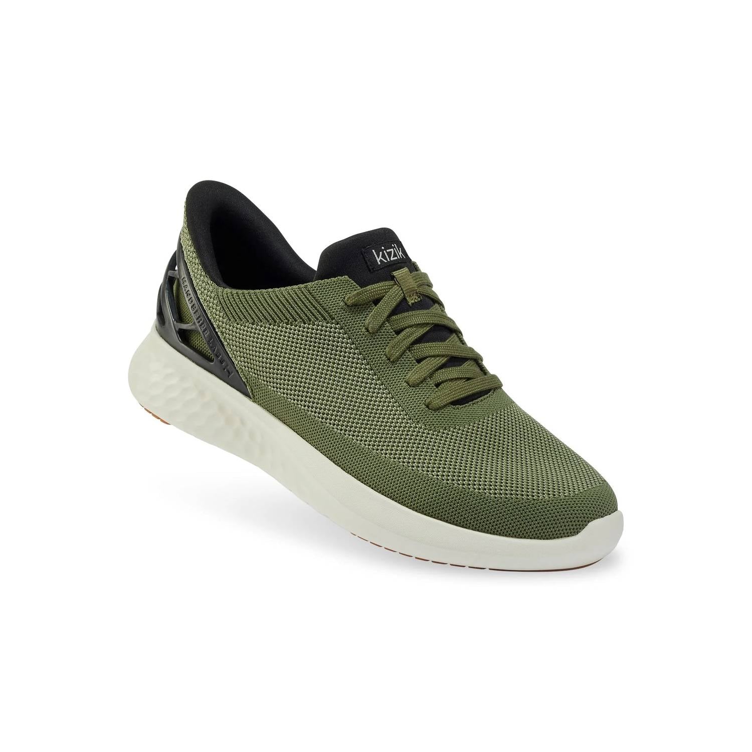 Step into comfort and style with the Men's Athens Sneaker by Kizik, featured in a sophisticated Olive Green. Designed with HandsFree Labs® technology, these sneakers boast a breathable knit upper and a Rabbit Foam® outsole for exceptional cushioning. The roomy toe box ensures a relaxed fit, while rubber traction pods provide enhanced grip. The removable and washable insoles allow for easy care and long-lasting freshness, making these sneakers a stunning addition to any wardrobe.