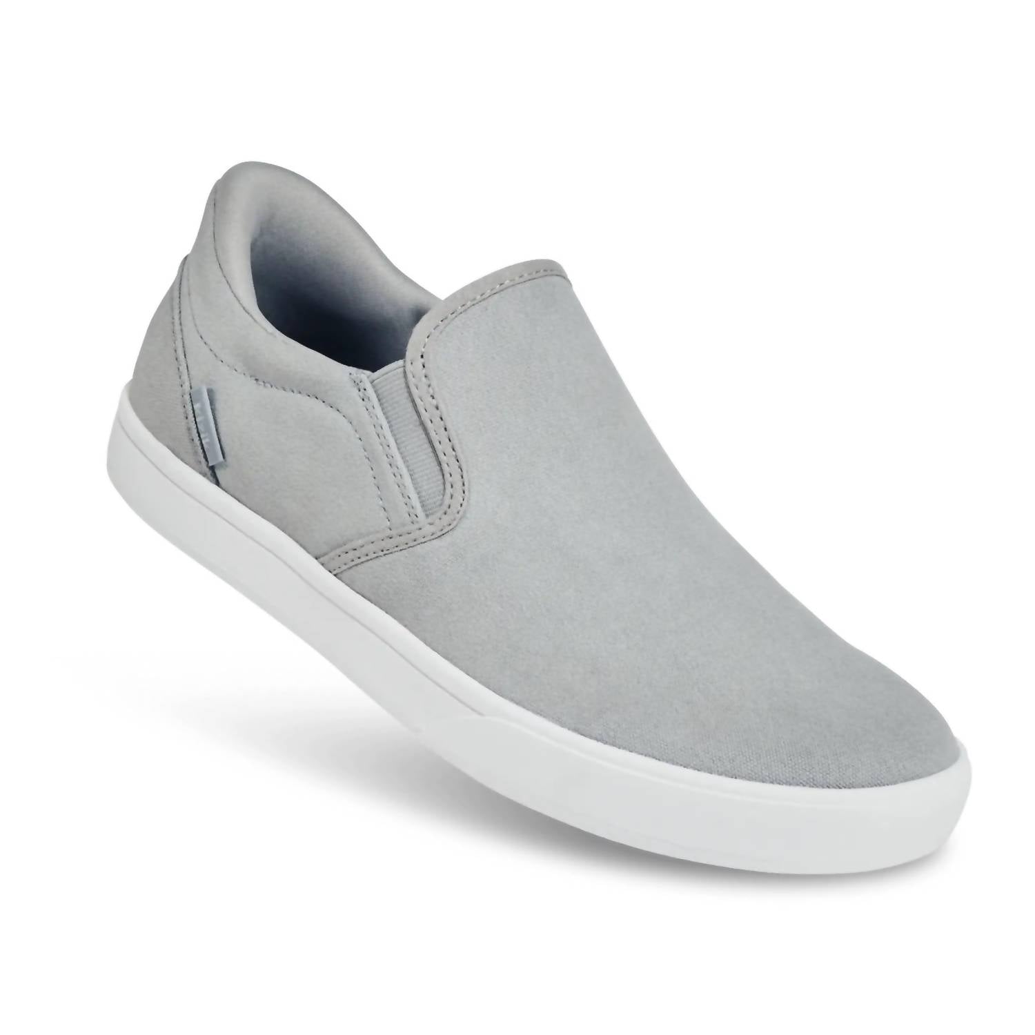 A classic loafer that is both comfortable and polished. Introducing the Unisex Venice Slip On Shoes by Kizik in a chic Granite hue, perfect for effortless style and comfort. Featuring a unique laceless design, these shoes boast a non-crushable heel and hands-free technology, redefining what a slip-on should be. With stretch canvas, a padded heel collar, and dual underfoot cushioning, they promise unsurpassed comfort. Care for the knit upper with a soft cloth or toothbrush and dishwashing liquid, spot-clean the leather with a soft cloth, and machine wash the removable insoles.