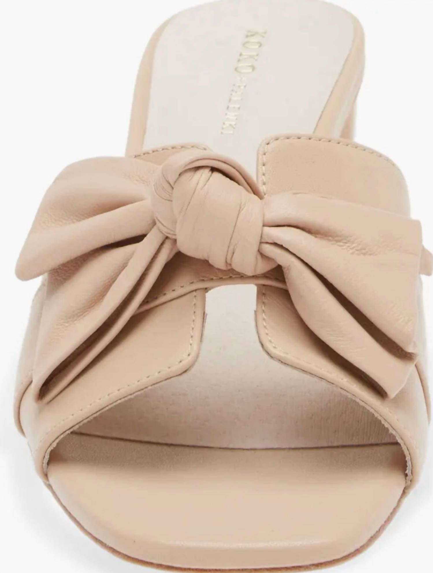 Flowy dresses, cropped pants, and even jumpsuits... this sandal works with them all! Introducing the Women's Sidney Slide Sandal by Koko + Palenki, a chic choice for the summer season. These bone leather slide sandals feature an open toe and a stylish bow detail. With a 2" low block heel, they offer comfort and elegance for any occasion. Made from fine leather and imported, these sandals are crafted for the discerning woman who appreciates both style and quality.