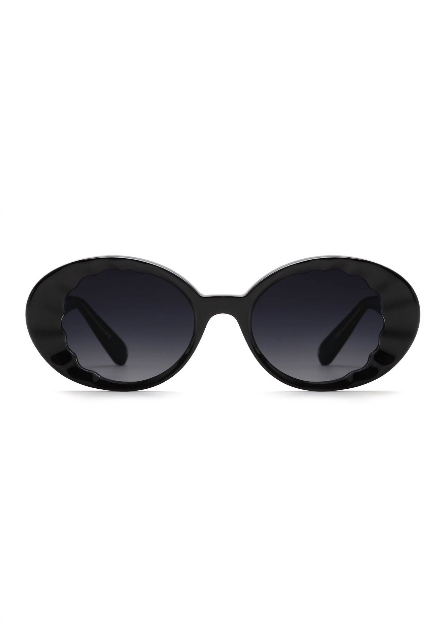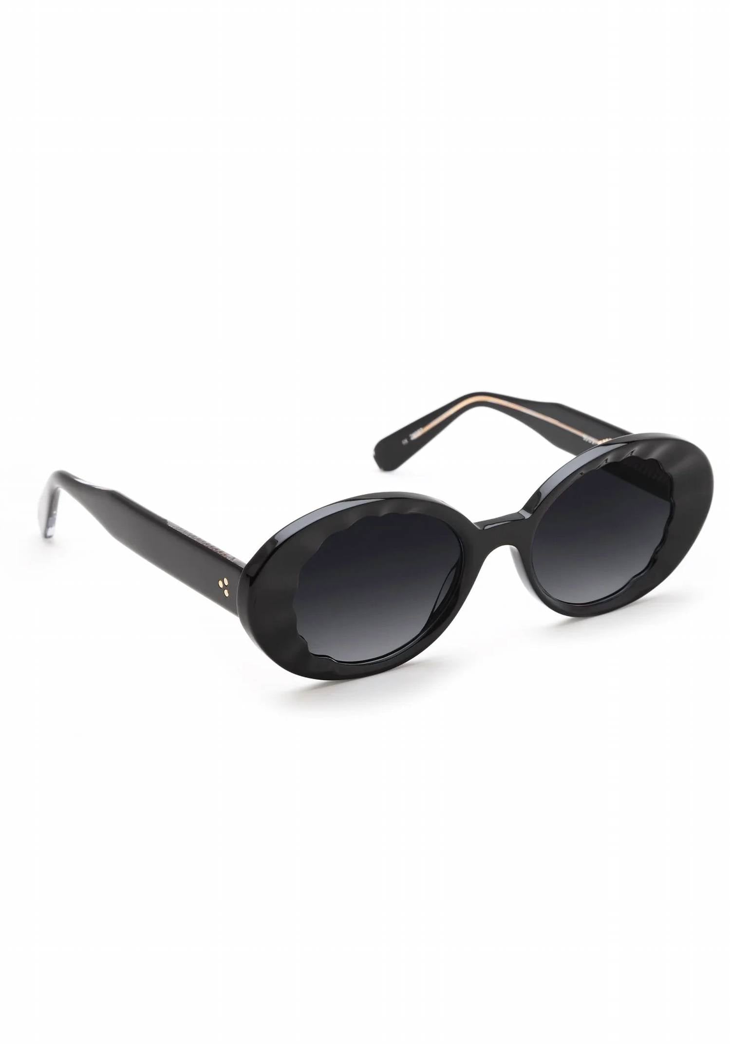 Make a statement and shield your eyes in these fashionable, yet practical sunglasses. Grab these adorable shades for your next vacation and elevate your accessory game. Bold statement piece perfect for maximalists. Featuring oval lenses and unique scalloped detailing, these chic frames effortlessly elevate any look. Part of KREWE's anniversary collection. Come in a striking Malt color combination.