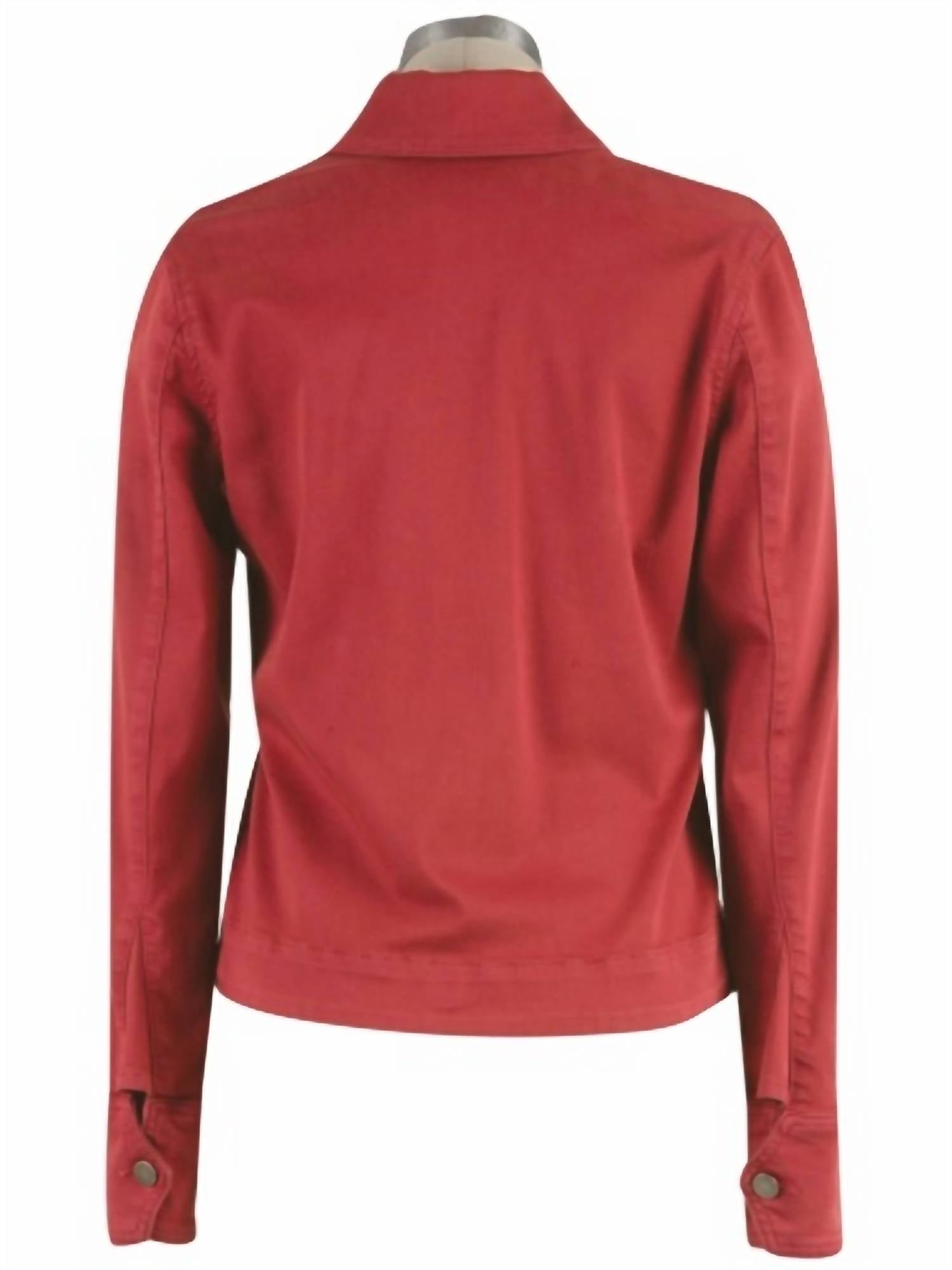 This utility jacket is the perfect combination of cool and feminine. Meet the Amanda Boxy Jacket by KUT FROM THE KLOTH, a must-have in a striking strawberry hue. This utility jacket features long sleeves and measures 23.5" in length for a chic fit. Crafted from a blend of 54% cotton, 22% polyester, 14% lyocell, 9% rayon, and 1% spandex, it offers both comfort and style. The jacket includes utility-style pockets and is finished with a zip and snap closure. Machine wash cold inside out and lay flat to dry. Made in China.