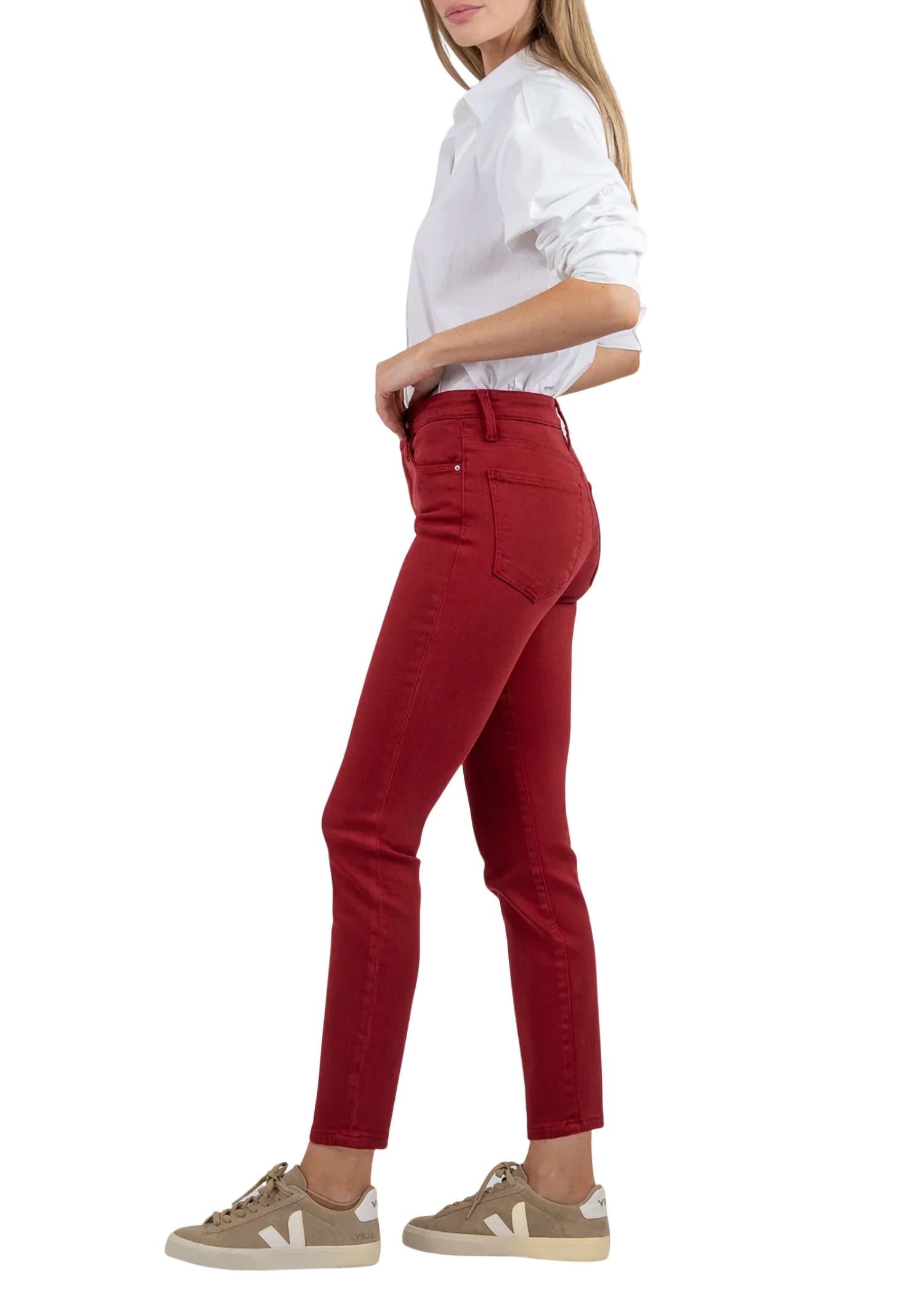 High-waist is here to stay and we especially love this style. High-rise skinny jeans with a slightly looser fit around the ankles. Made from super soft stretch fabric. 66% Cotton, 28% Lyocell, 4% Polyester, 2% Spandex. Inseam: 27 1/4". Leg opening: 11". Rise: 10 1/2". Silhouette: Skinny. Machine wash cold inside out with like colors. Only non-chlorine bleach if needed. Tumble dry low or lay flat to dry for better care. Warm iron if needed. Wash once before wearing.