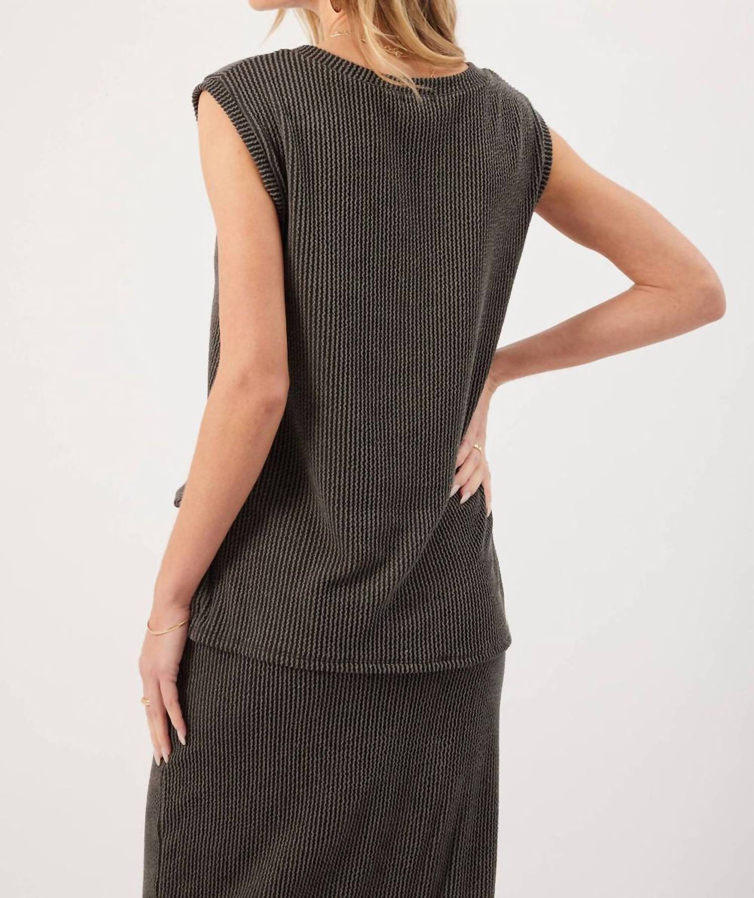 The perfect tank top for those warmer weather seasons. Introducing the Kalina Charcoal Top by Kylie Paige, a perfect blend of luxury and laid-back style for any casual outing. This sleeveless, V-neck tank top is crafted from a soft blend of 76% Polyester, 21% Rayon, and 3% Spandex, ensuring comfort with a loose fit ideal for vacation or springtime wear. With a length of 26 inches, its pull-on closure and textured design make it versatile for pairing with skirts, shorts, or jeans. For best care, hand wash and line dry this chic addition to your wardrobe. Model is 5'9" and is wearing a size small.