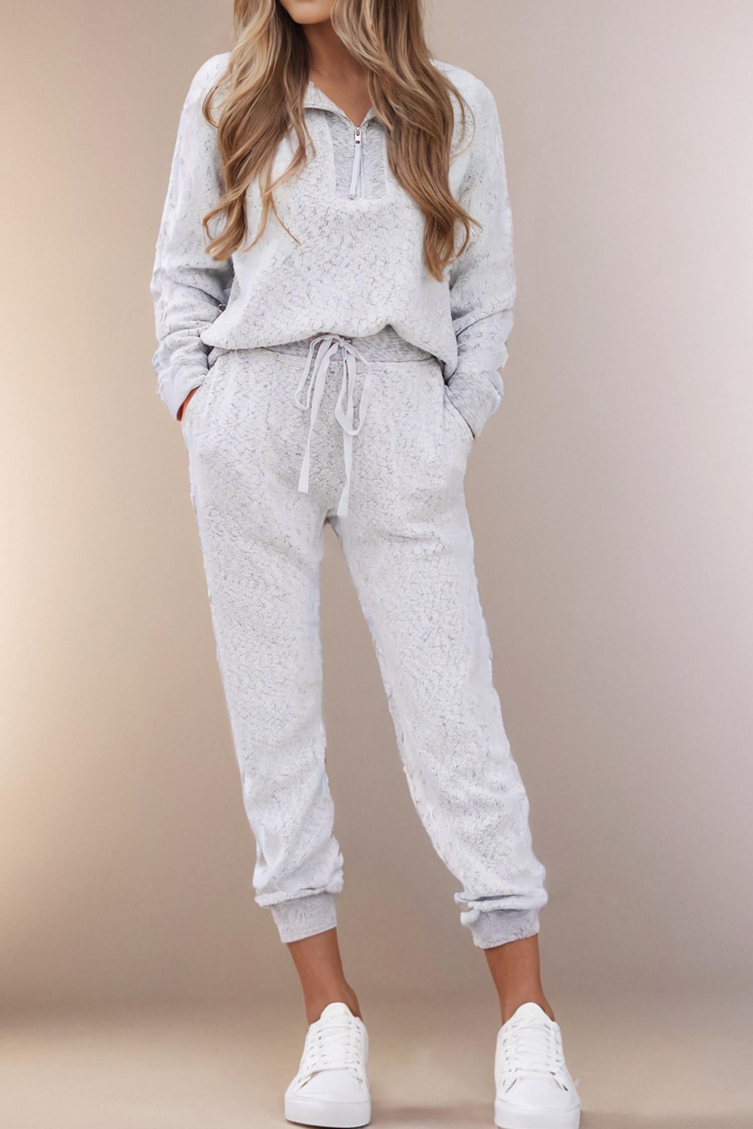 La Society - Half Zip Pullover Top & Drawstring Joggers Set