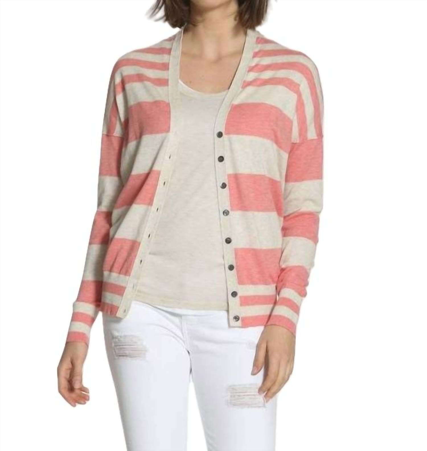 This cardigan will be a sweater-rotation favorite.Mixed and variegated stripes. Long Sleeve. Vee Neck. Shell Button Closure. Hits at Hip. 100% Cotton. Hand Wash or Dry Clean, Lay Flat to Dry.
