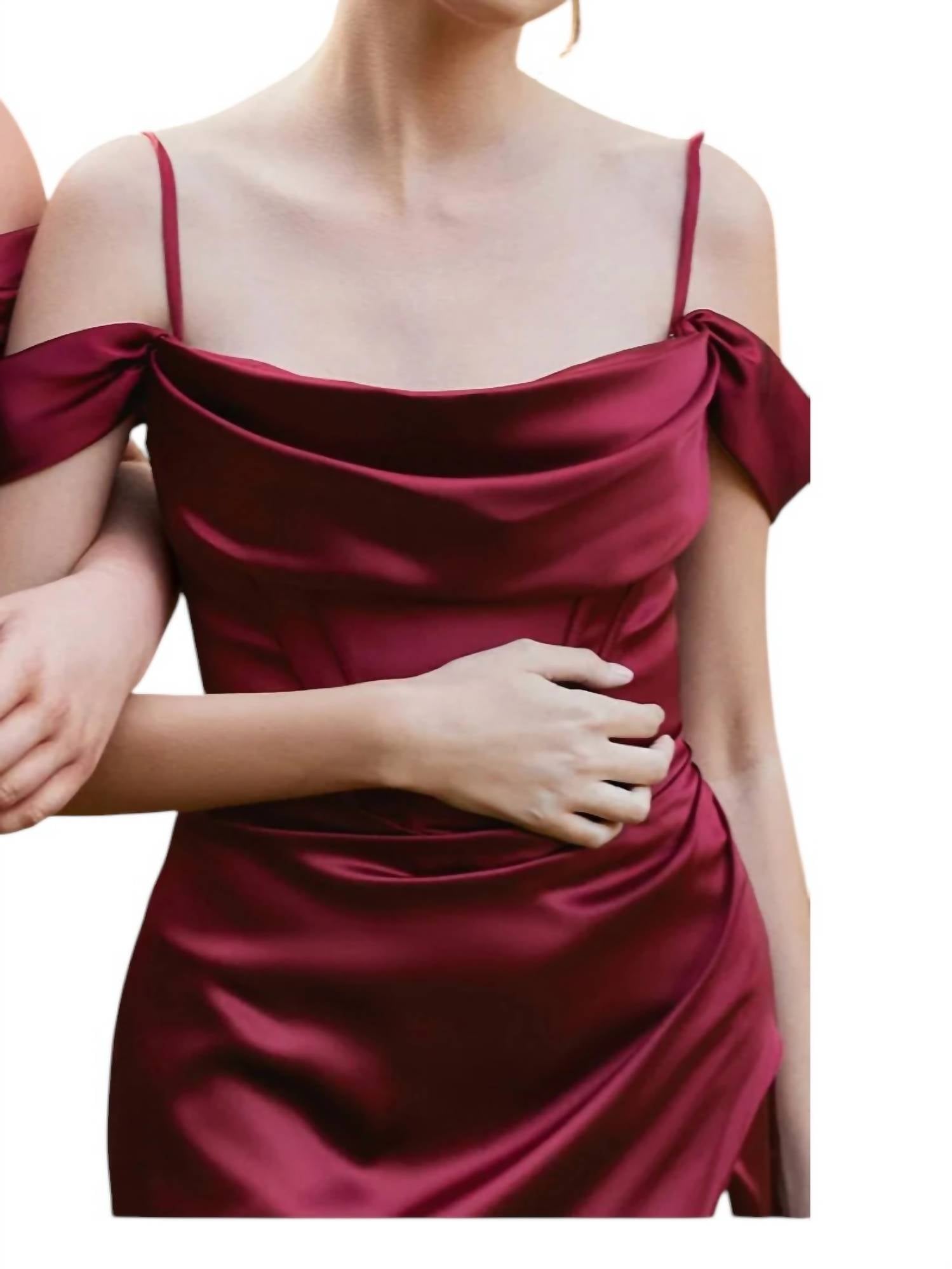 Who doesn't love a good maxi dress? This one you'll be reaching for season after season. Introducing the Satin Off The Shoulder Bridesmaids Prom Dress by Ladivine, perfect for making a statement at your next event. This women's dress features delicate spaghetti straps and is crafted from luxurious satin for a smooth finish. The empire waist silhouette and snazzy thigh-high slit offer a blend of elegance and allure in a maxi length. Designed with a zip closure, this dress requires hand washing and line drying to maintain its quality. Ideal for summer occasions, embrace the quiet luxury trend in a stunning burgundy hue.