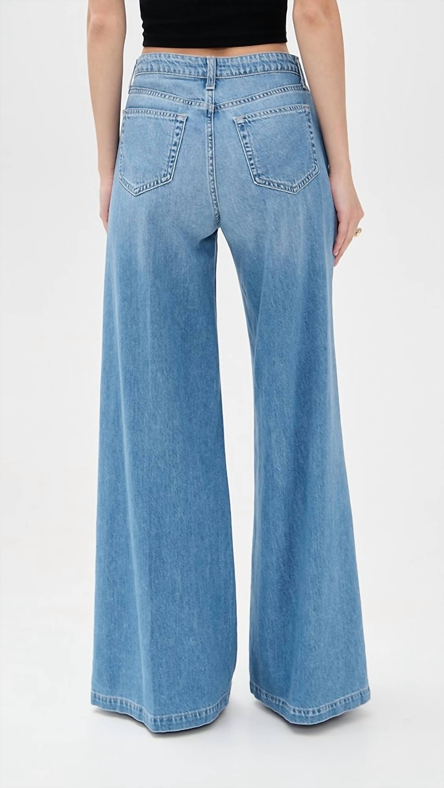 A flattering silhouette that's suprisingly versatile. Elevate your wardrobe with the Quincy High Rise Wide Leg Jeans by L'Agence, a quintessential piece for the Spring season. These women's jeans feature a relaxed fit and a trendy wide leg style in a solid blue medium wash denim, perfect for a nod to 90s fashion. Enjoy the practicality of pockets and a secure fit with a zip closure, complemented by a high rise waist that flatters the silhouette.