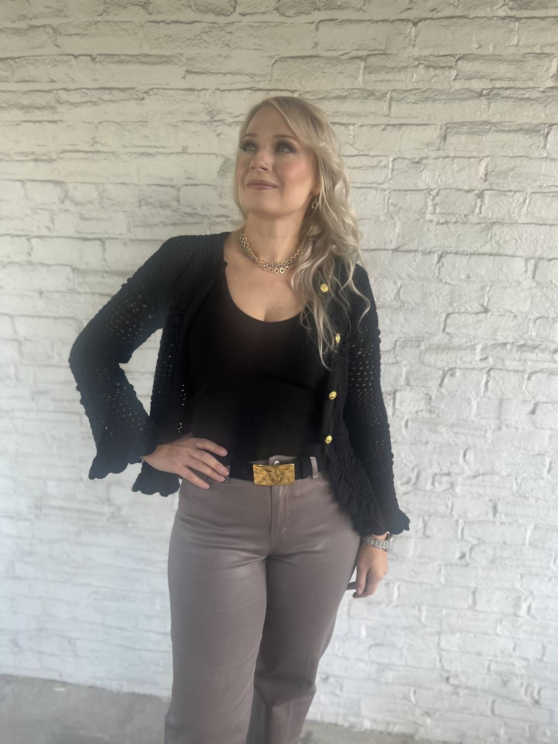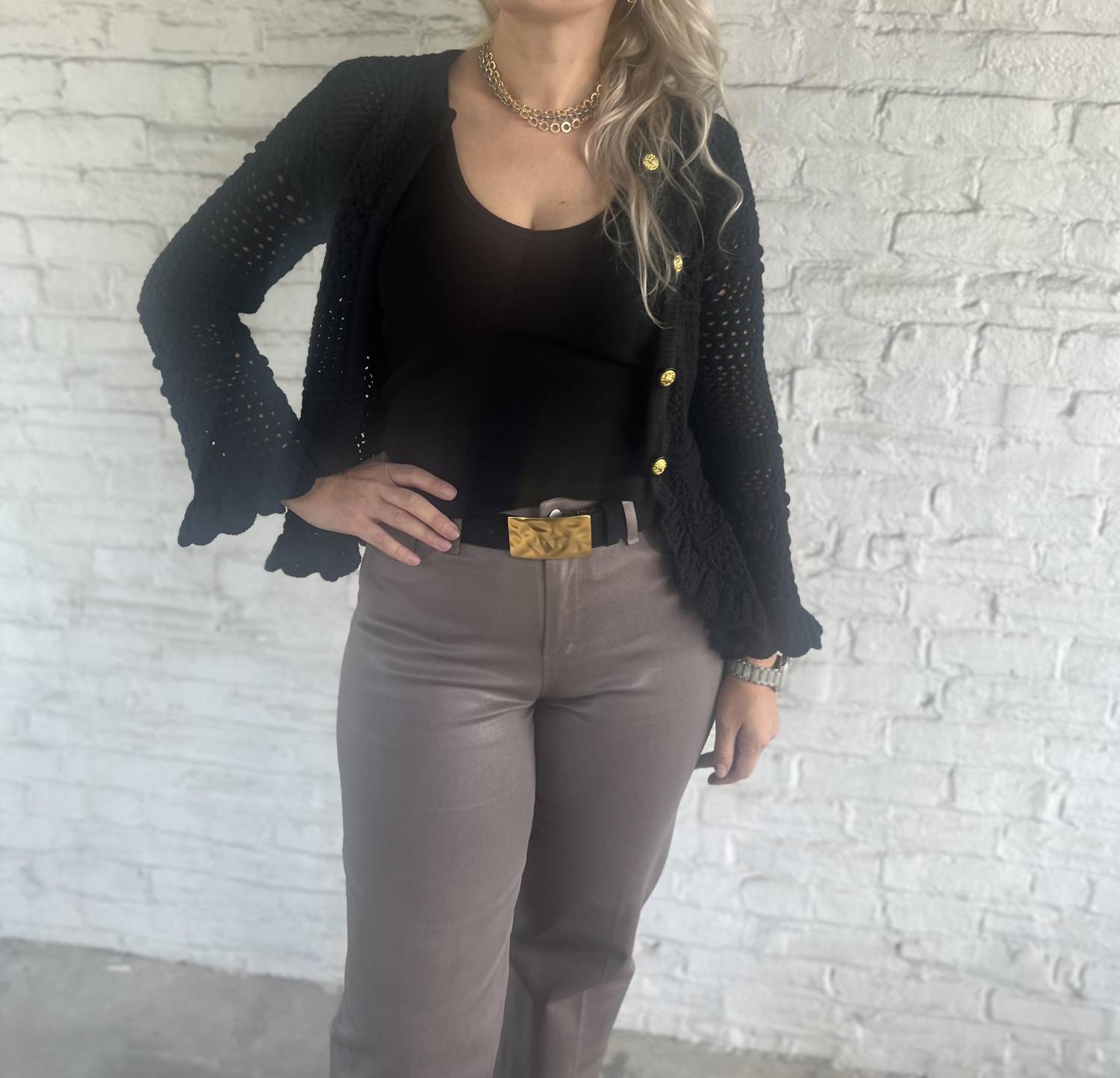 A ruffled cardigan with rich texture and charm, crafted from an open-stitch knit with statement buttons, and playful scalloped hems. Romantic, cozy, and perfect for layering with anything and everything.