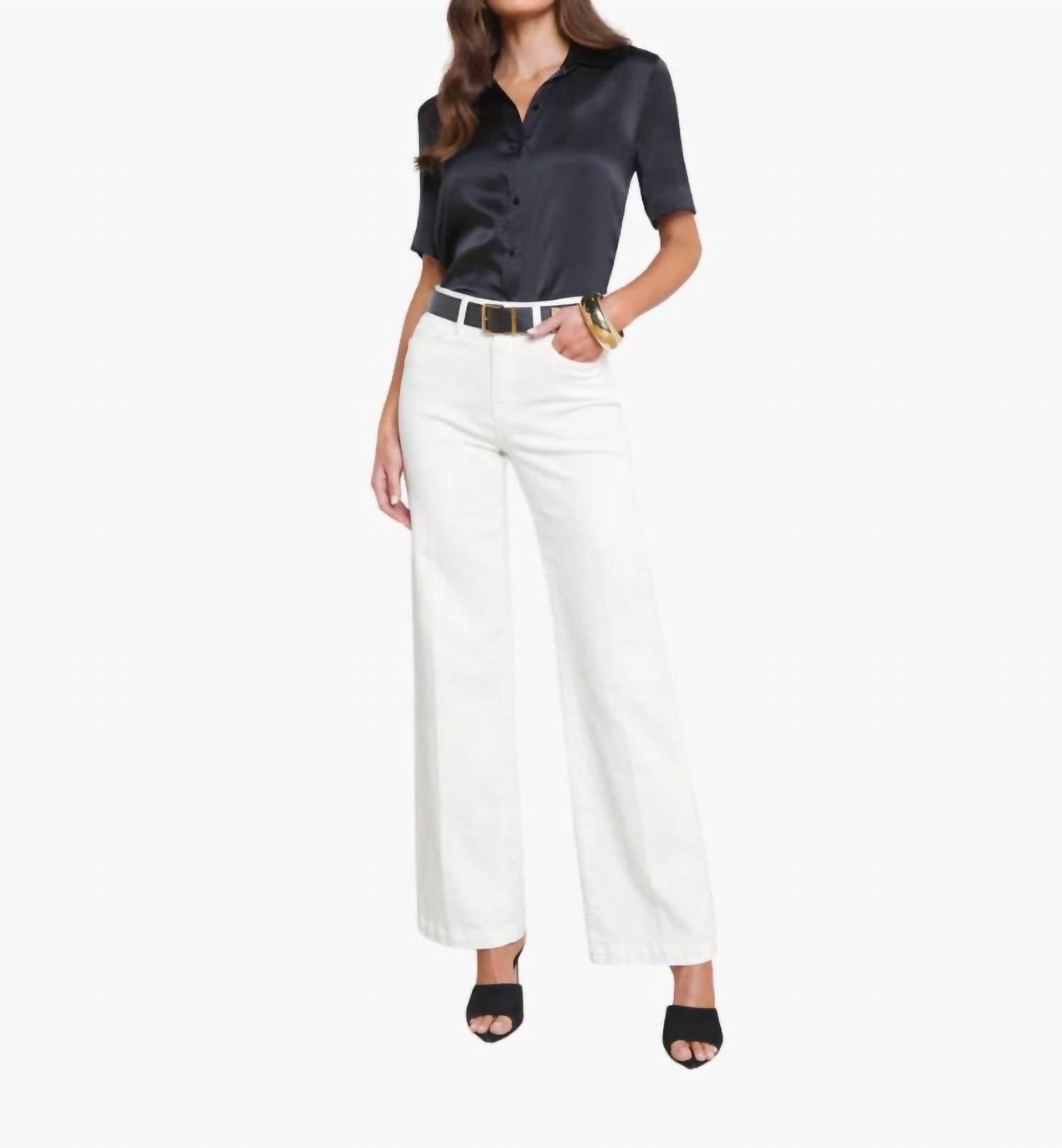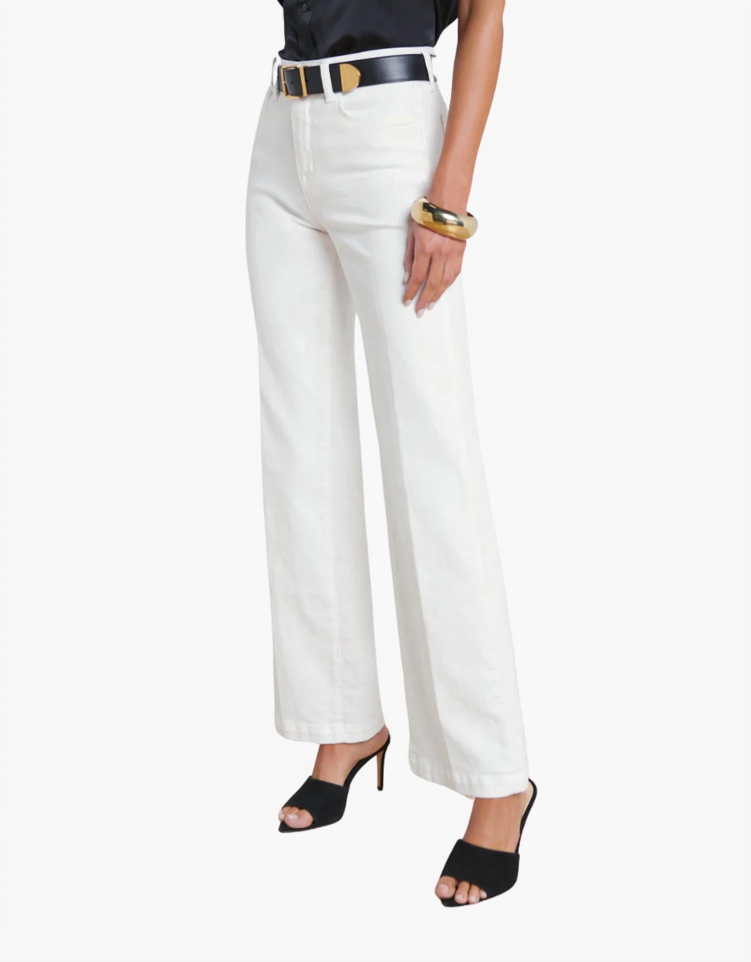 Pair these wide leg jeans with mules, slides or your favorite strappy sandals. These jeans offer a relaxed fit and wide-leg style, perfectly complementing the high-rise contoured waistband, which rises 10 inches. Made from a cotton blend, featuring 93% cotton, 6% polyester, and 1% spandex, they provide comfort and stretch. With a 32-inch inseam, they include practical pockets and a zip closure, crafted in Los Angeles for an effortlessly sophisticated look. Care is simple with machine wash instructions.