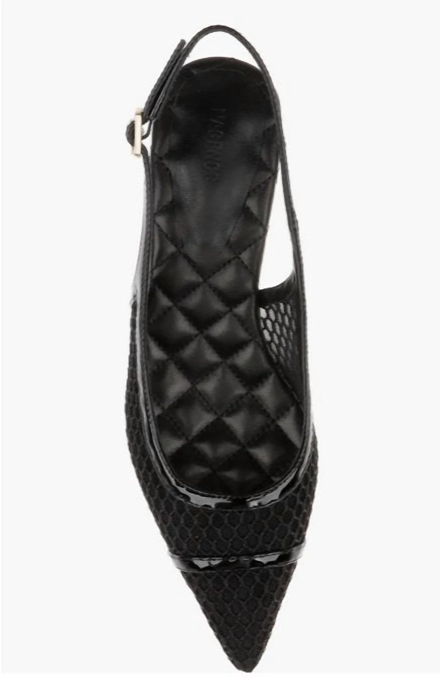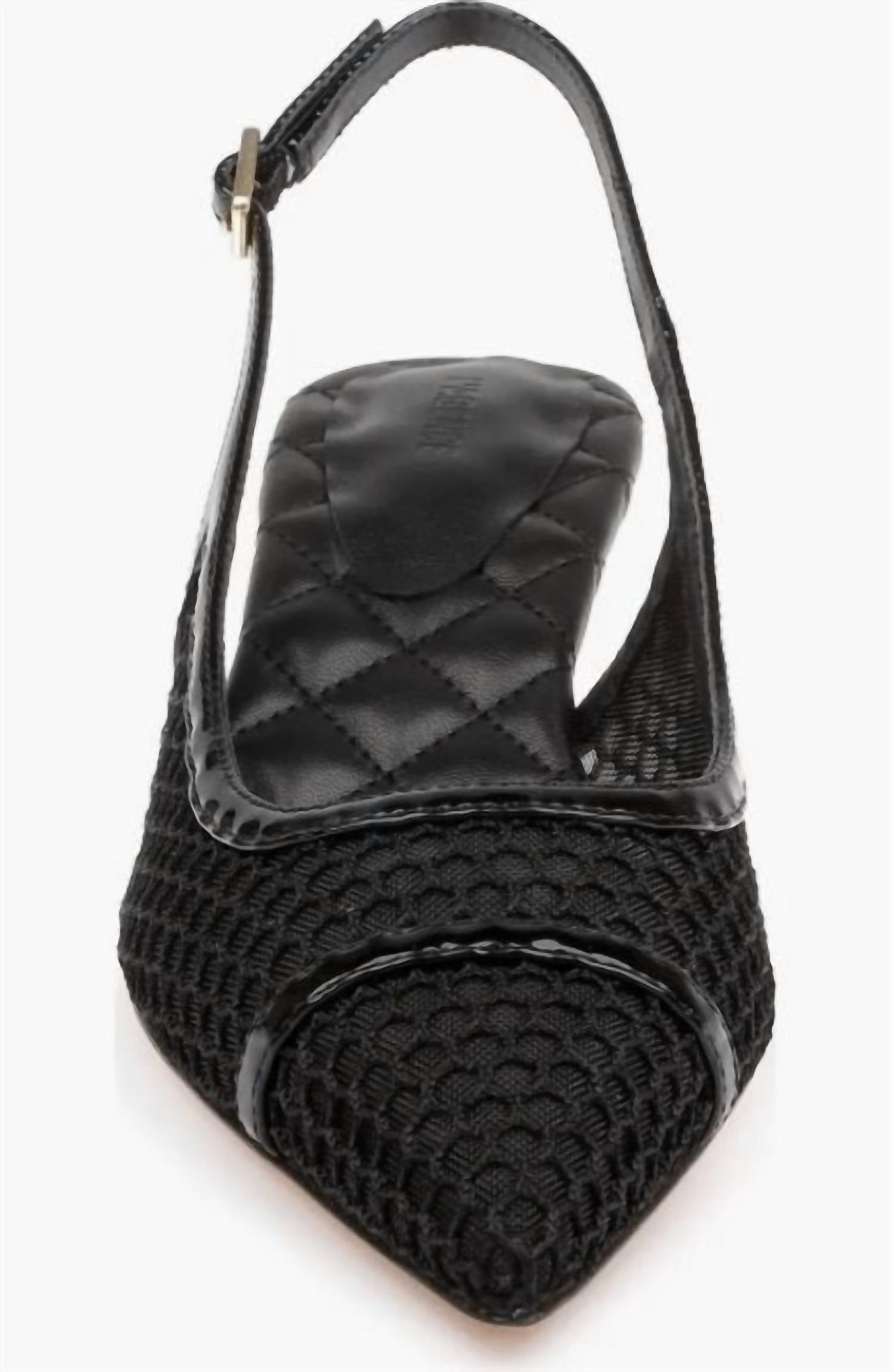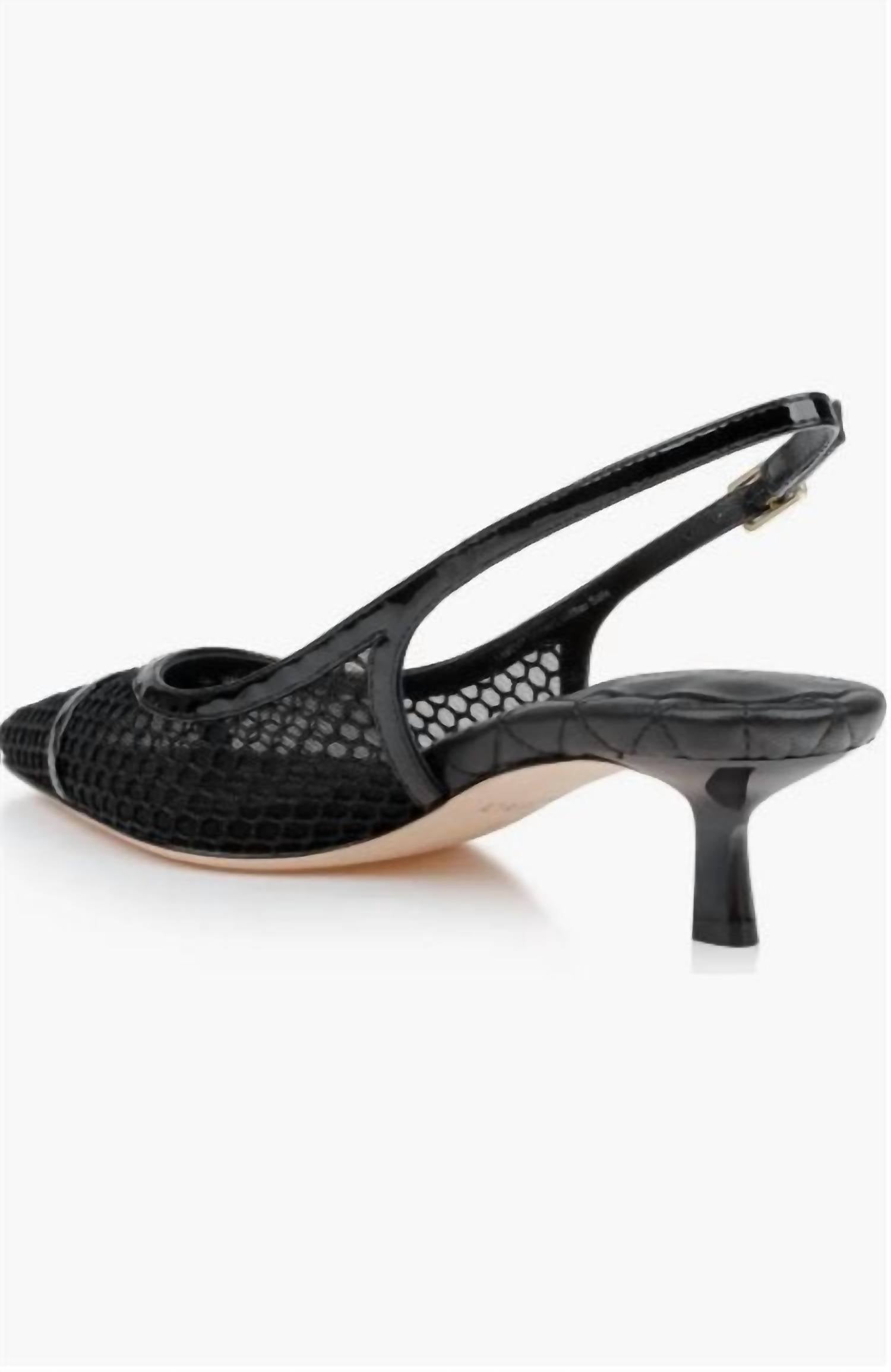 Don't be deceived, these heels are comfy as can be. Experience the elegance of the Women's Graland Pointed Toe Slingback Pump by L'Agence, designed for sophistication in Black Mesh. Featuring a pointed toe and a stylish kitten heel, these pumps are perfect for workwear or cocktail parties. The heel measures at a graceful 1.75 inches, and the adjustable slingback strap ensures a secure fit. Composition: Textile and leather upper with leather lining and sole, and they are imported. Enjoy the comfort of memory foam cushioning with every step.