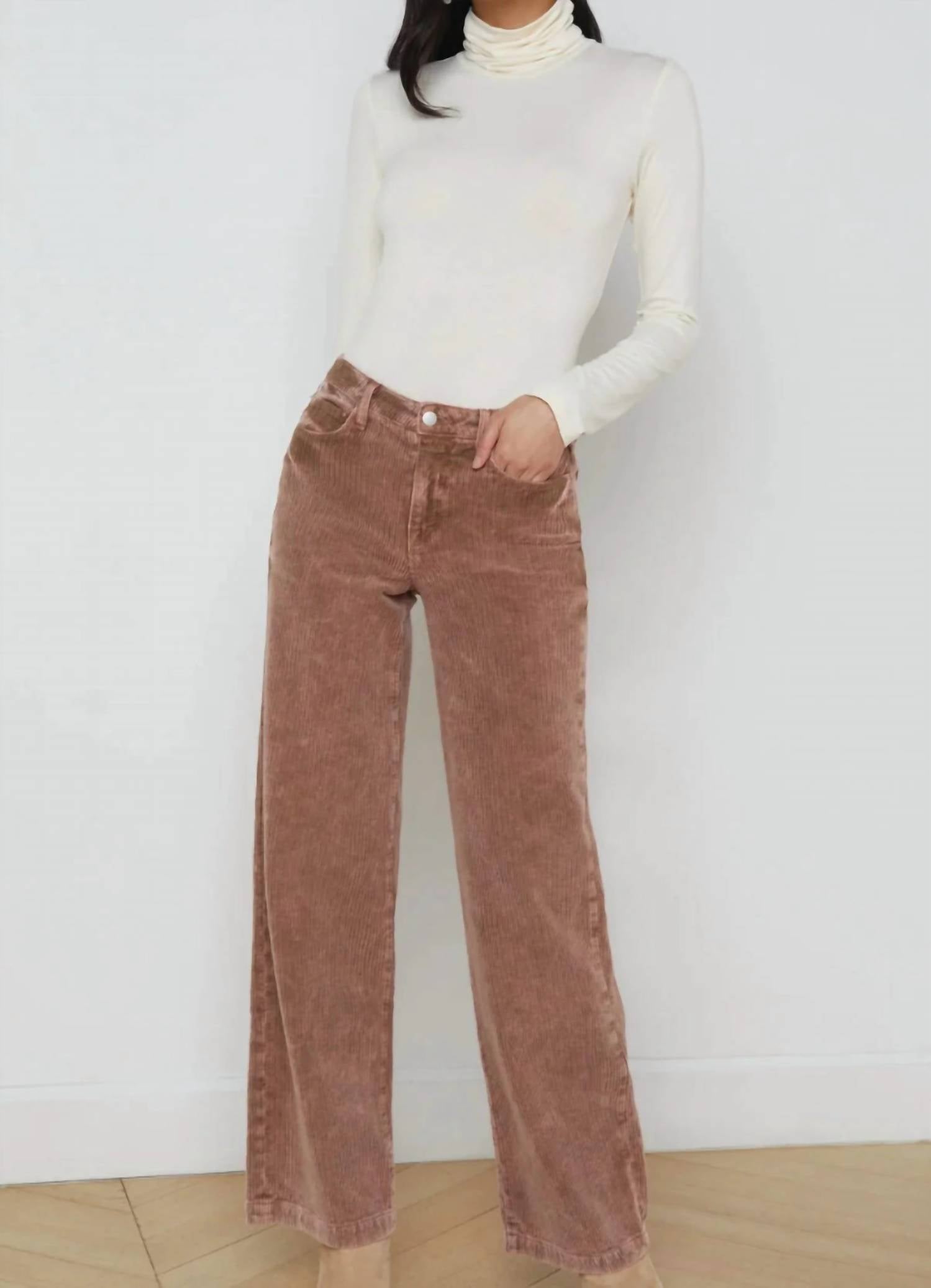 Introducing the Scottie Wide Leg Pants by L'Agence, a chic choice for those who appreciate texture with a relaxed fit in French Vanilla. Made from luxurious corduroy, these pants combine comfort and style effortlessly. They feature an impressive 32-inch inseam and are crafted in the USA. With convenient machine washability, maintaining these pants is a breeze.