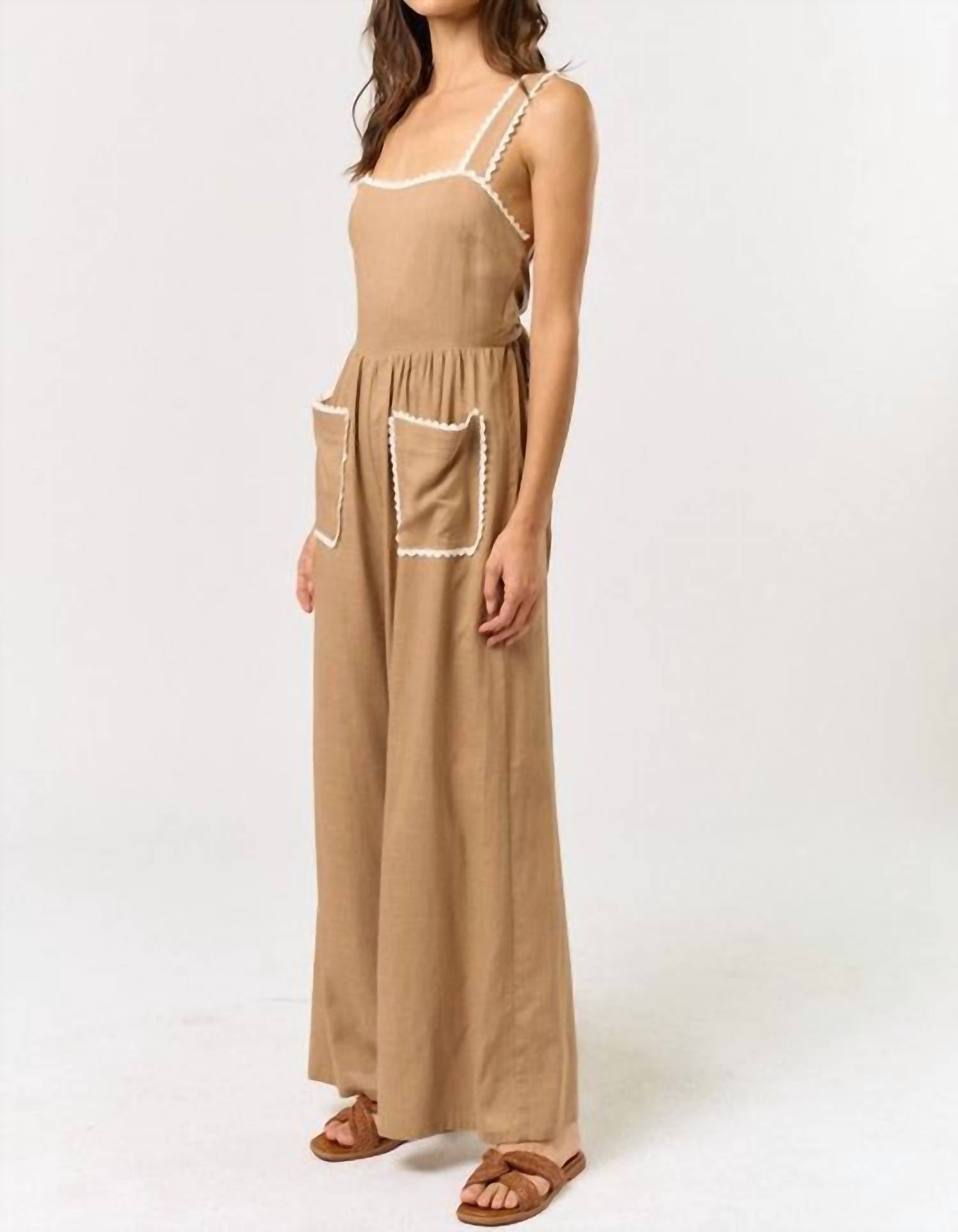 Lalavon - Laid-Back Charm Lace Trim Jumpsuit