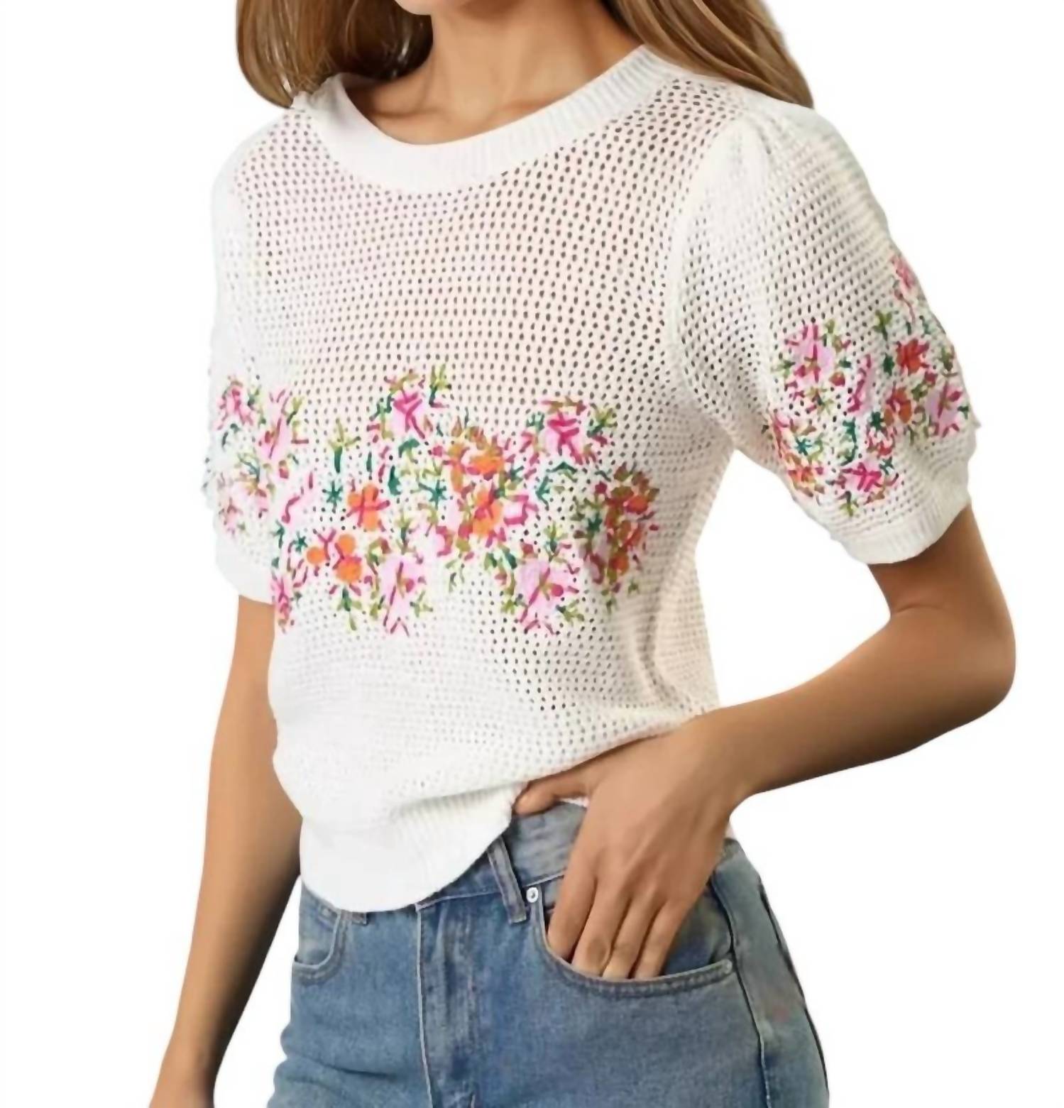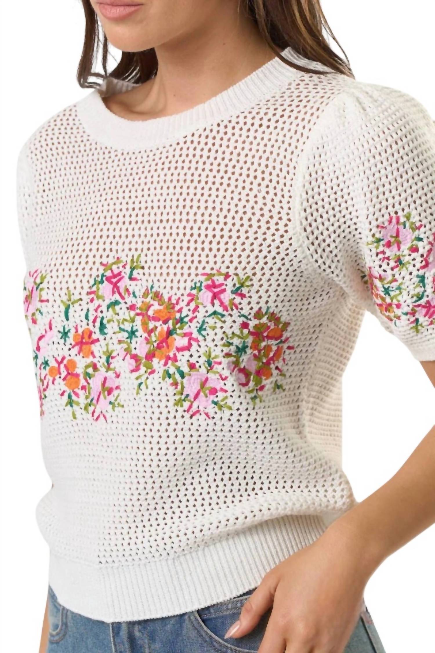 Lalavon - Susan Puff Sleeve Floral Embroidered Crochet Top
