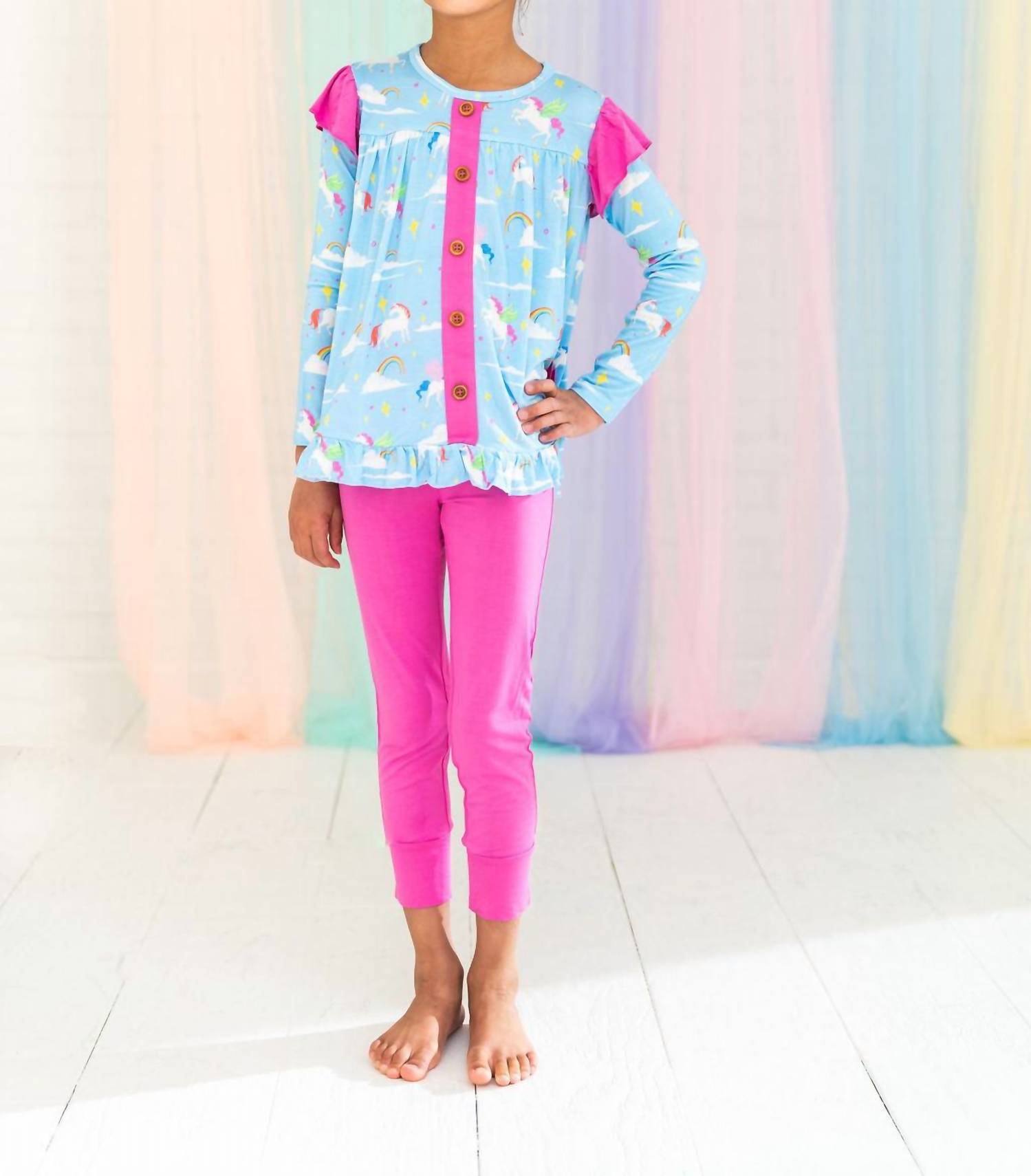 Laree + Co. - Girls Sage Bamboo Long Sleeve Peplum Legging Set