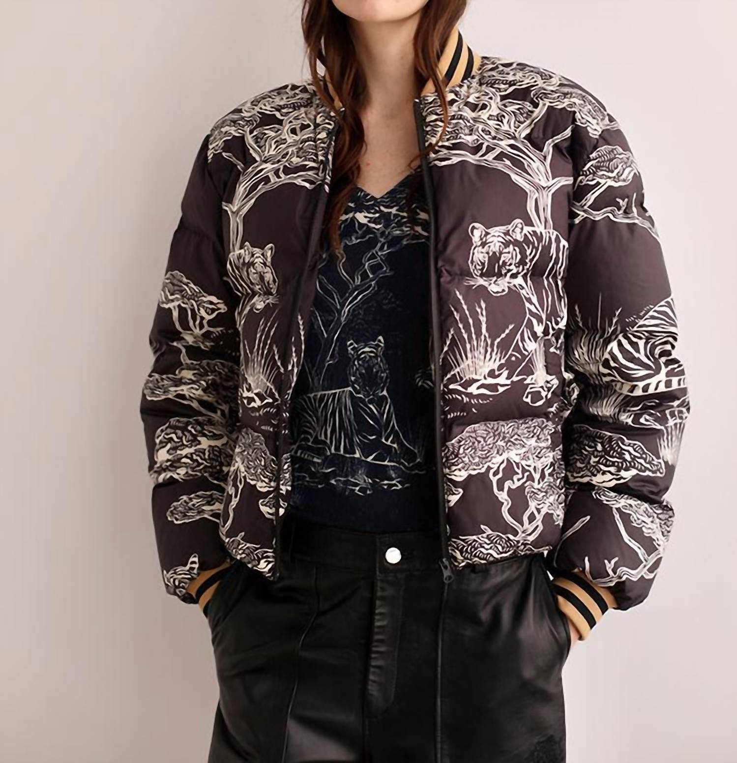 Cooler temps means cute puffer jackets and this one is a fan favorite. Introducing the Safari Puffer Jacket by Las Sureñas, a winter essential for women in striking Safari Black Print. This long sleeve, patterned jacket is crafted from durable nylon, ensuring warmth and style for your travels. The quilted design provides insulation without bulk, and a zip closure allows for easy wear. Featuring two zippered side pockets, it's perfect for keeping hands warm or storing essentials on the go.