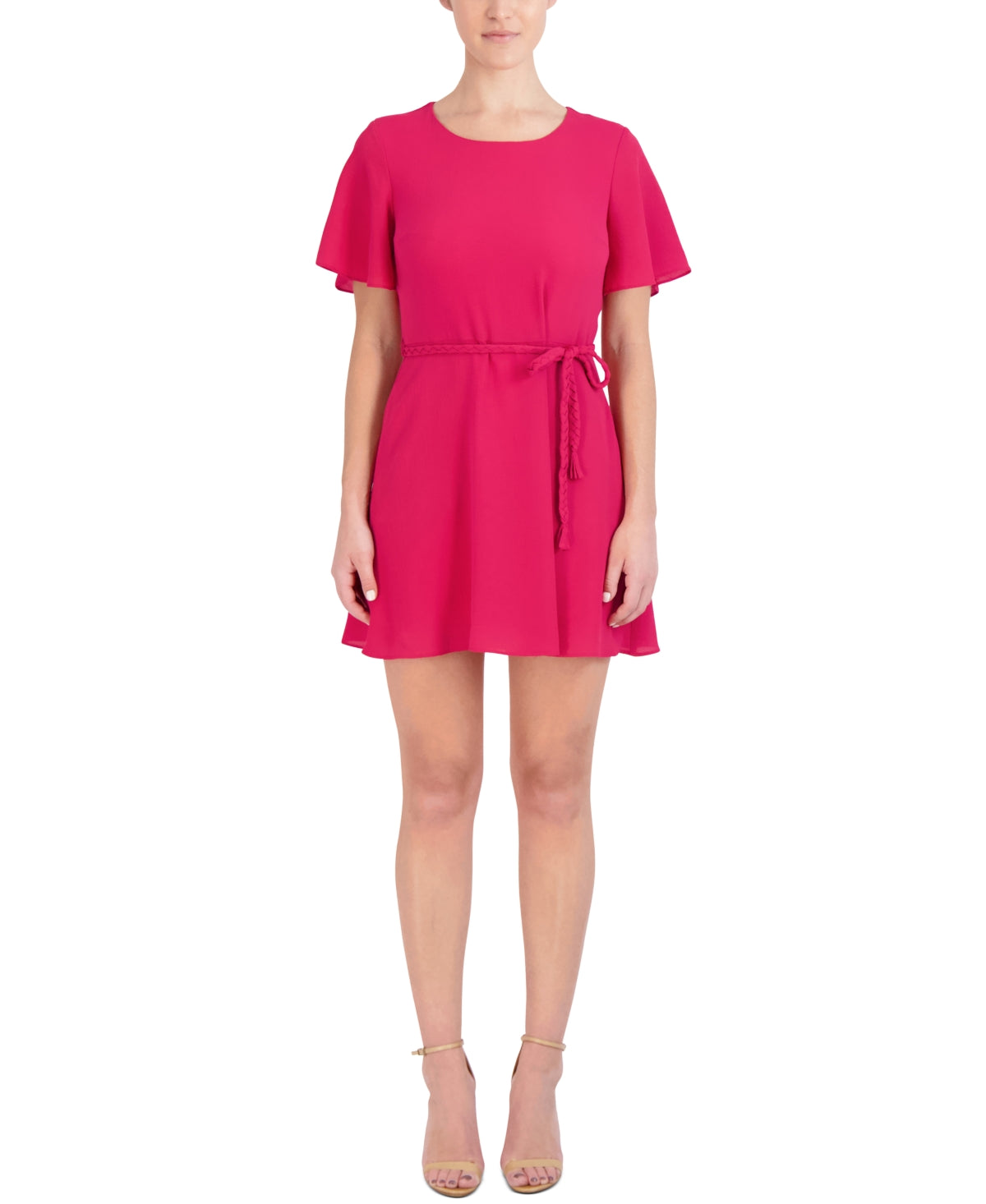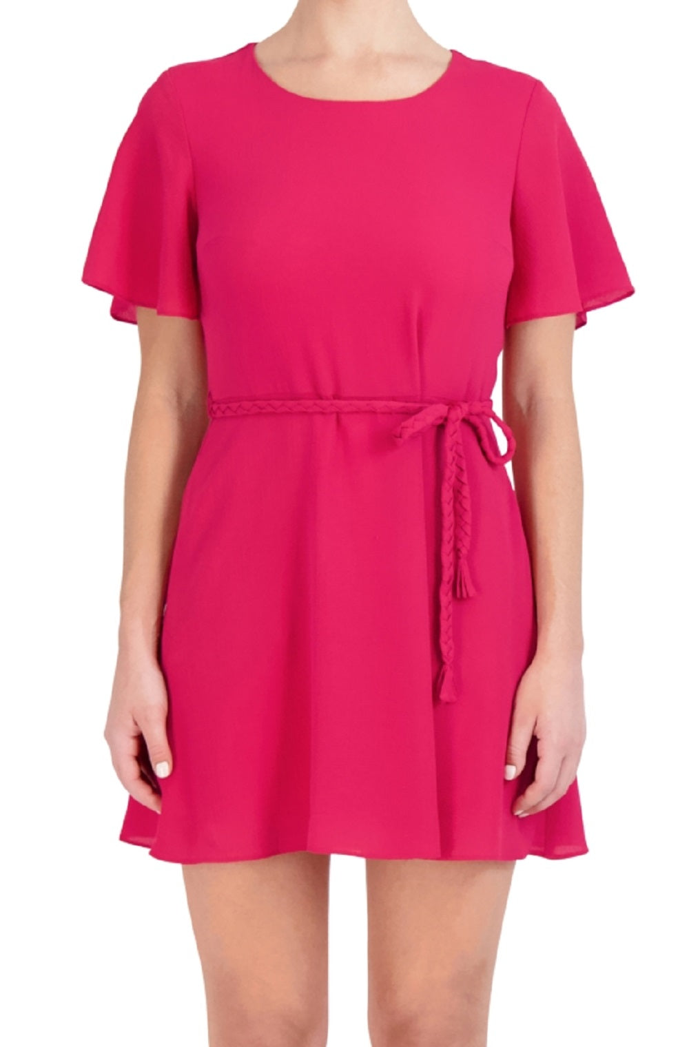 A braided belt defines the waistline of this petite A-line dress from Laundry| a charming pick complete with short sleeves.| Approx. 36 long from center back neck to hem. Length is based on size 6P and varies 1/4 between sizes| Fitted through the chest and waist; structured A-line skirt sits slightly over hips| Designed to fit and flatter 5'4 and under frame| Round neckline; A-line silhouette| Back zipper closure