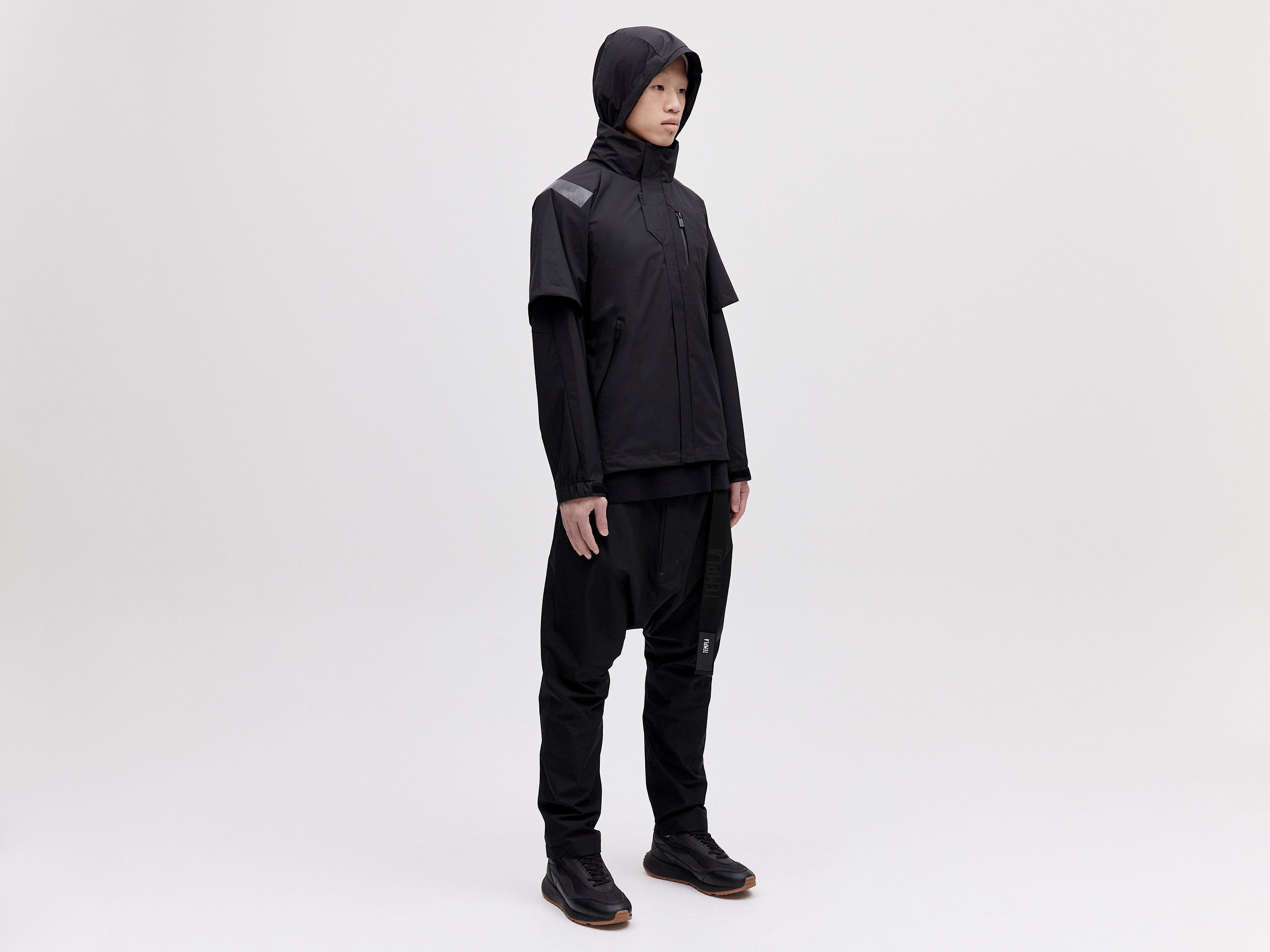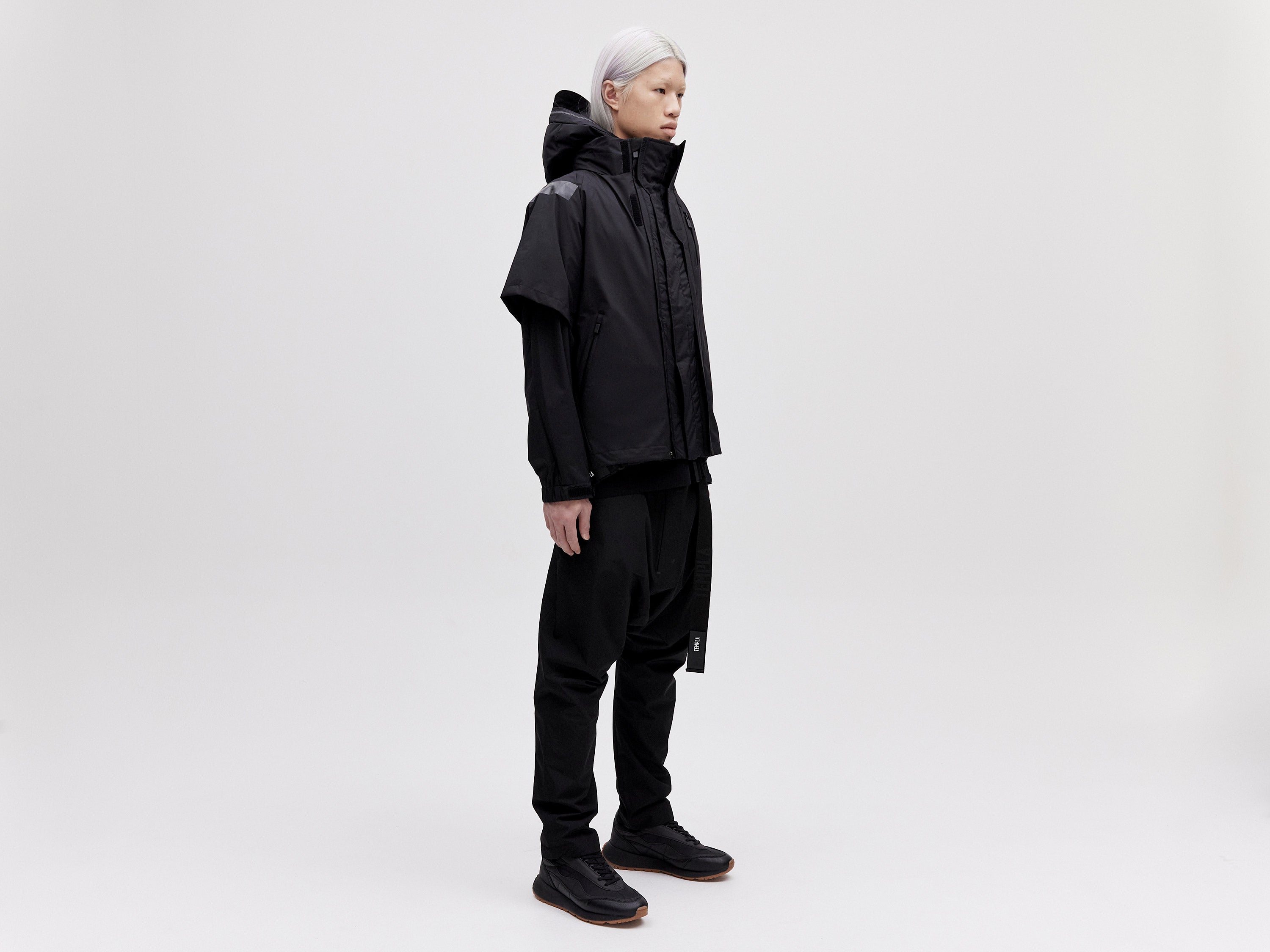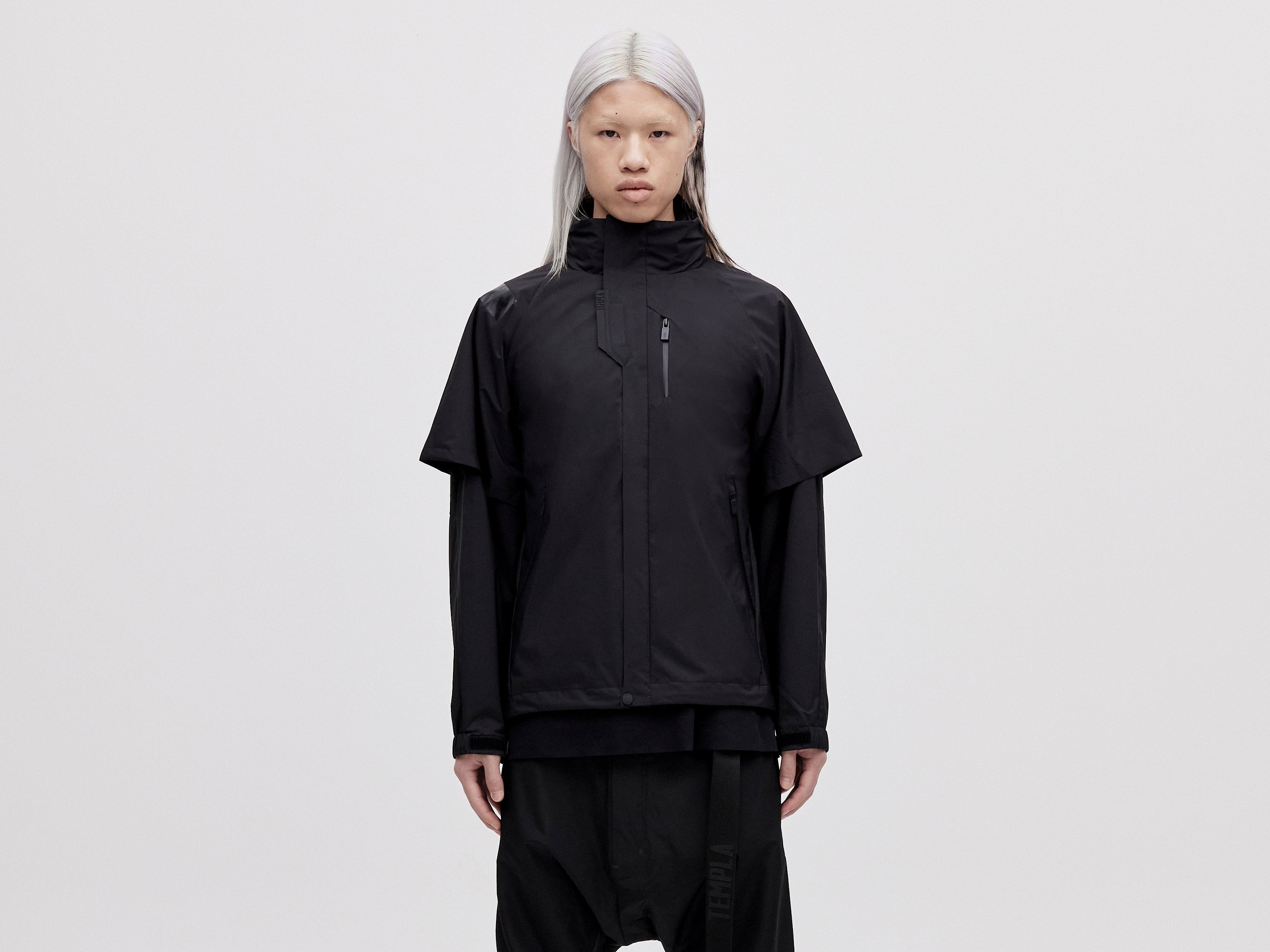 A lightweight all-weather shell jacket featuring a packable hood and ventilated armholes. Our Layered 2L Jacket is designed to fully integrate with our Modular Down Vest. Simply zip the jacket onto the hidden zips of the front placket of our Modula Down Vest for added warmth and protection against the elements.