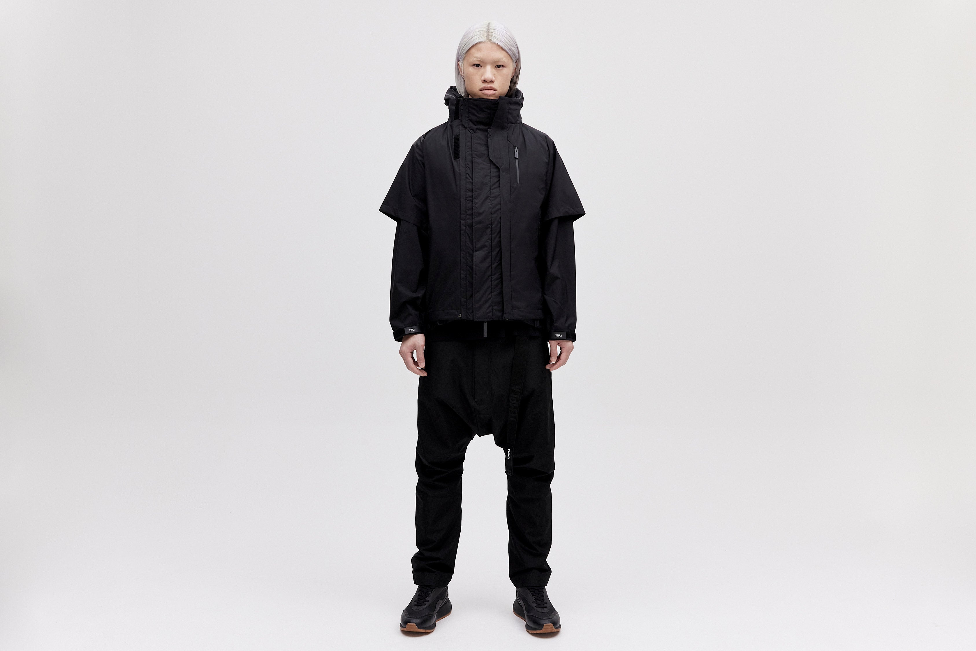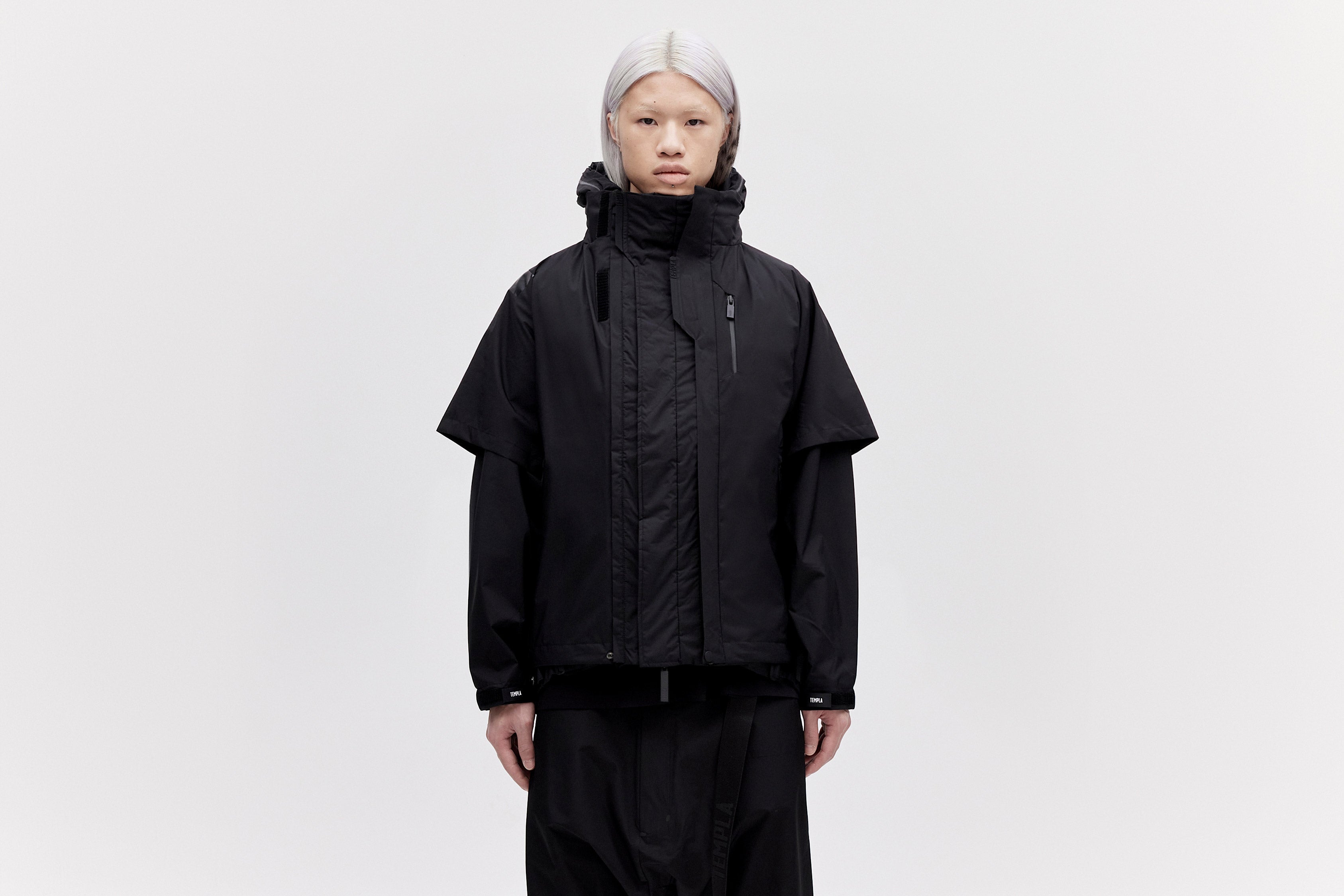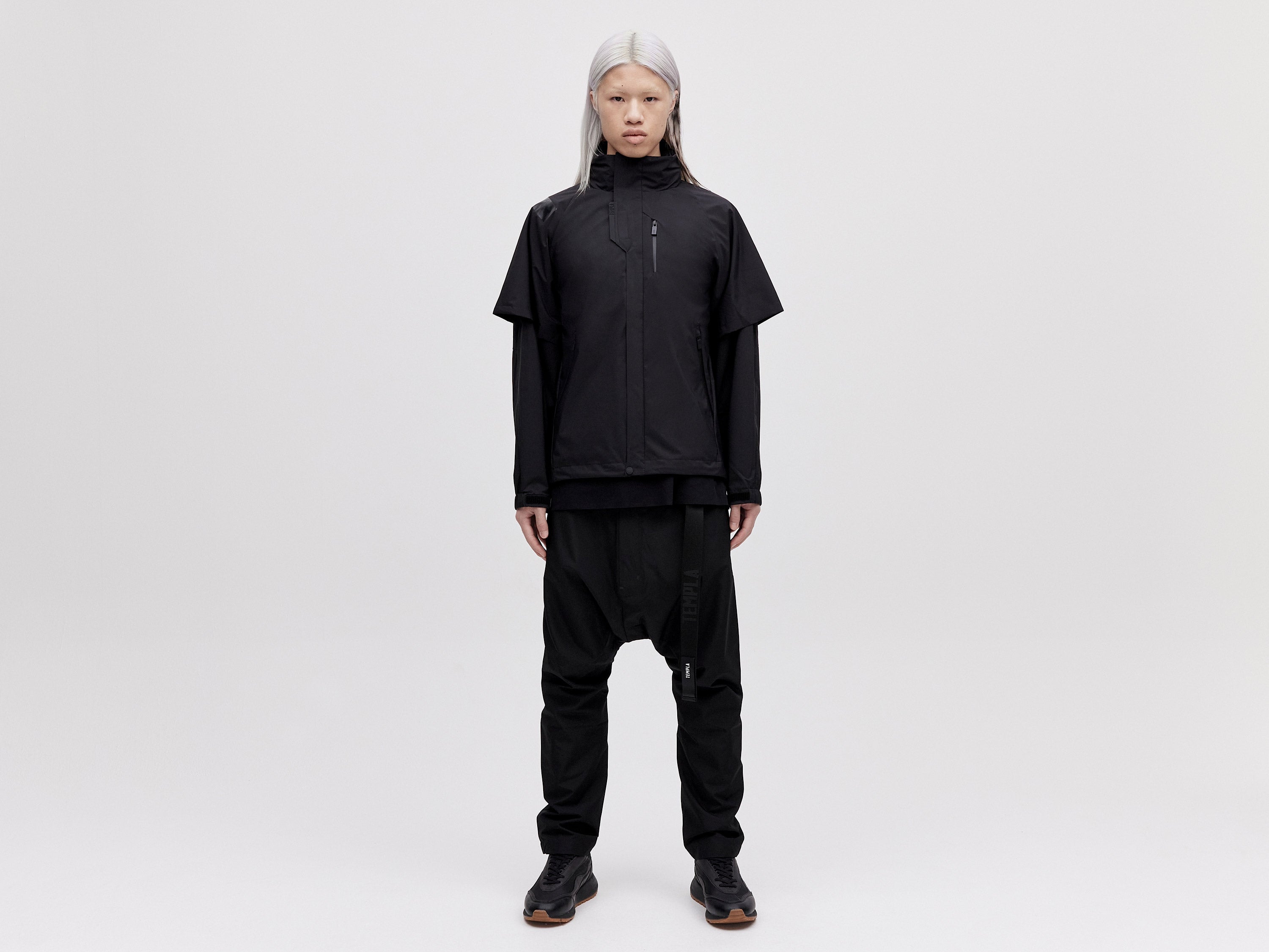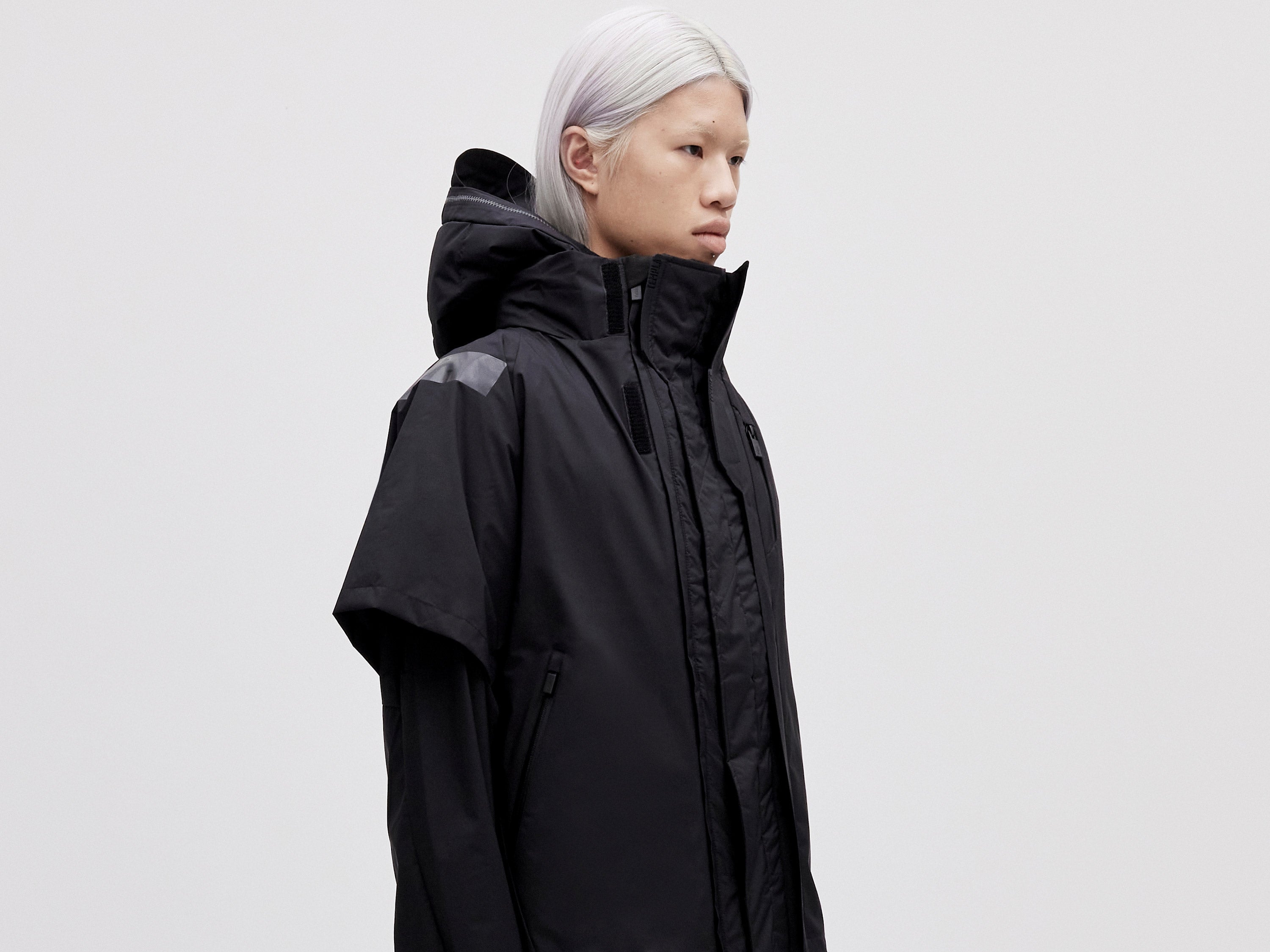 A lightweight all-weather shell jacket featuring a packable hood and ventilated armholes. Our Layered 2L Jacket is designed to fully integrate with our Modular Down Vest. Simply zip the jacket onto the hidden zips of the front placket of our Modula Down Vest for added warmth and protection against the elements.