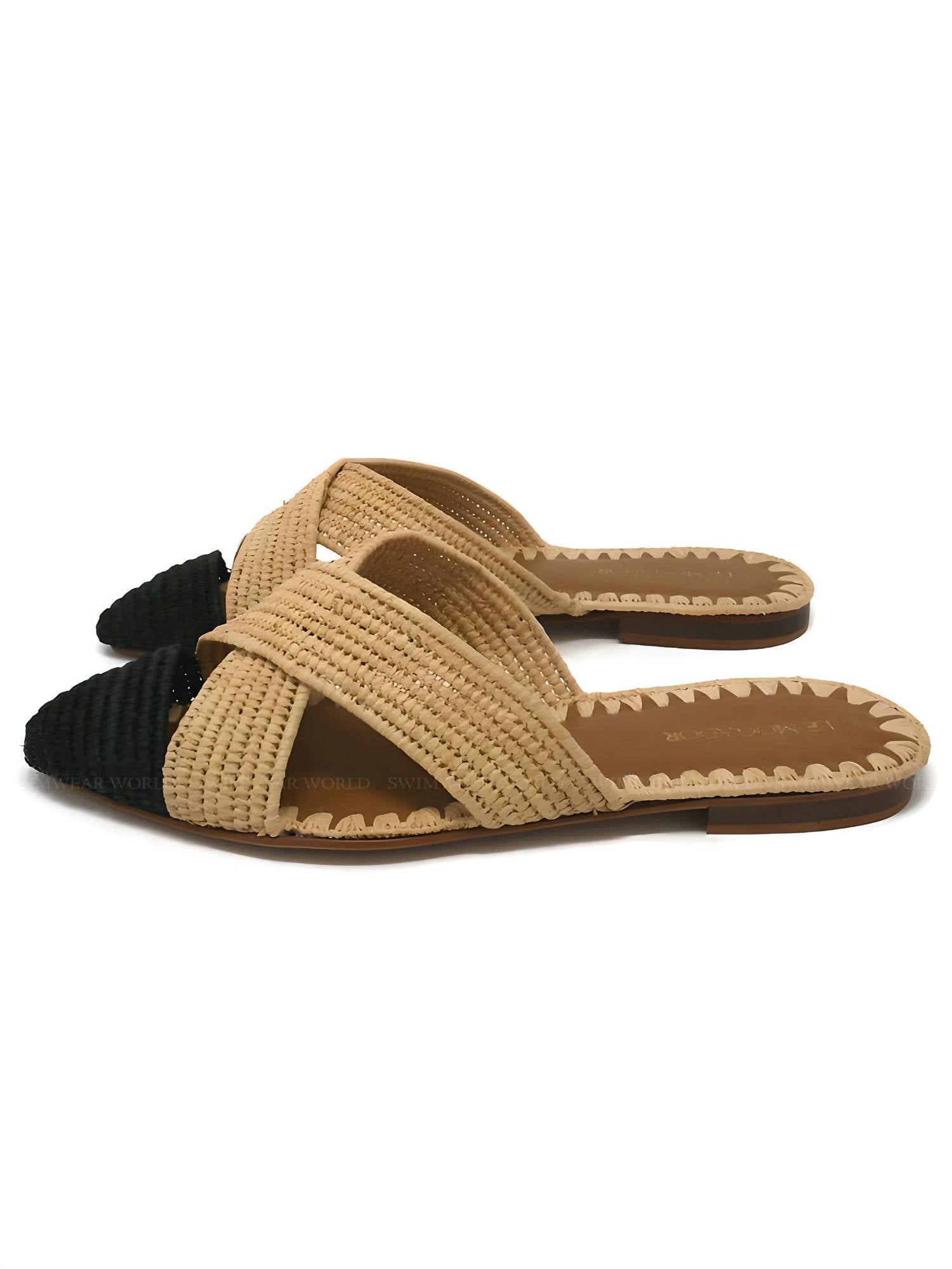 This sandal will take you from brunch to dinner and everything in between. Step into style with the Women's Azoulay Sandal by Le Mogador, boasting a chic boho design. These raffia sandals in a nude hue feature an open toe with a black accent, perfectly complementing any outfit for a versatile look. With a comfortable flat heel height of 0 inches, these medium-width sandals are a spring essential. Effortlessly stylish, they are a great choice for casual occasions, including the 4th of July celebrations.