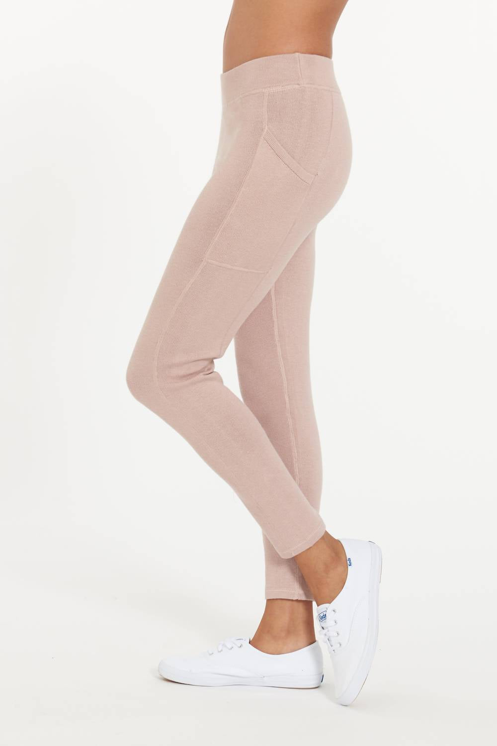 You'll be reaching for this best-selling legging all season long. The Women's Vista Legging by LEIMERE in Dusty Rose is crafted for ultimate comfort in a blend of 50% Modal, 25% Cotton, 15% Nylon, and 10% Cashmere. These solid-pattern leggings are designed with a low-rise fit and feature measurements of a 25.5" waist and a 25" inseam. Originating from imported materials, they offer a pull-on closure that's ideal for fitness or lounging. For care, hand wash them and lay them flat to dry, with machine wash gentle cycle and low tumble dry as alternative options. Model is wearing a size small (5'9" height).