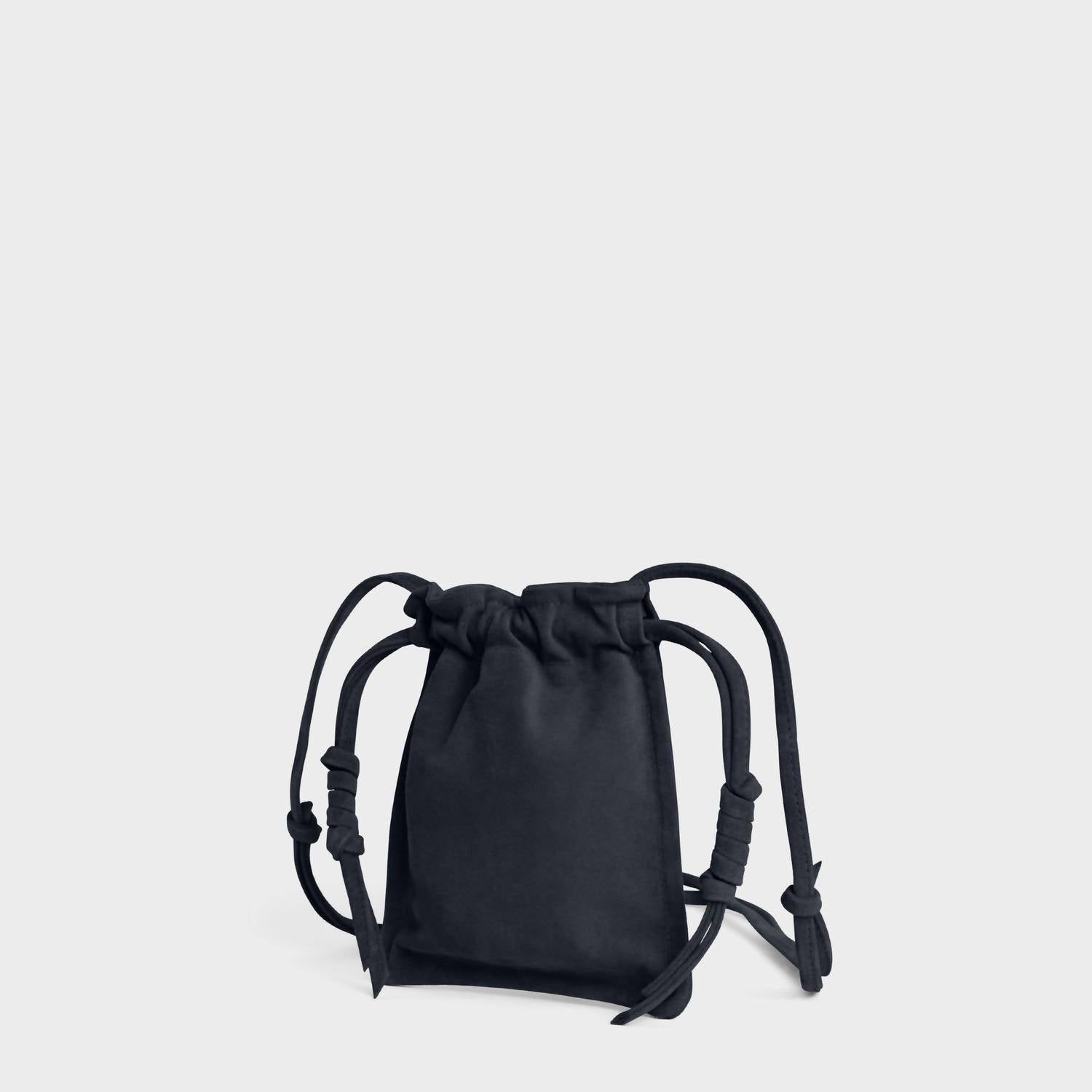 This crossbody bag will be your go-to bag of the season. The Women's Mini Bowie Drawstring Crossbody Bag by Lemiz seamlessly blends style and practicality with its smart design in a chic Midnight hue. Crafted from durable Italian cowhide suede, this bag offers a streamlined profile perfect for minimalist aesthetics. With dimensions of 8.25" in height and 7.34" in width, it ensures your essentials are neatly stored via a convenient knotted drawstring closure. This piece exemplifies the highest attention to detail, making it a modern must-have.