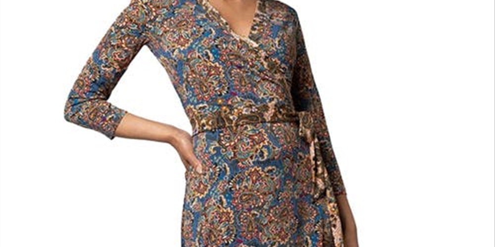Leota Women's Floral Wrap Dress Blue Size L
