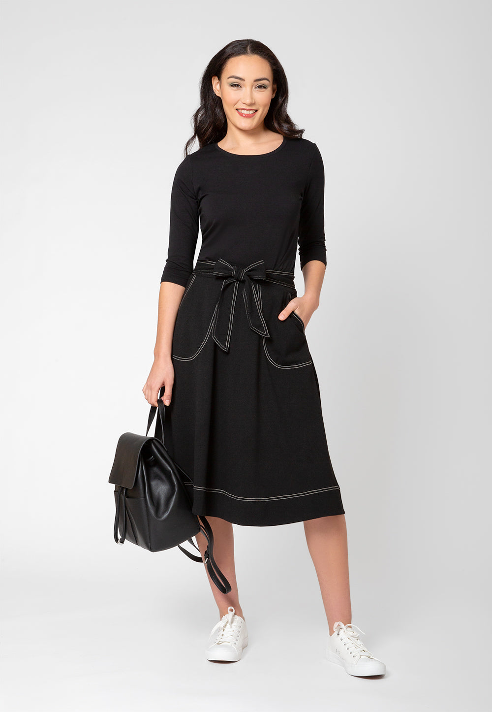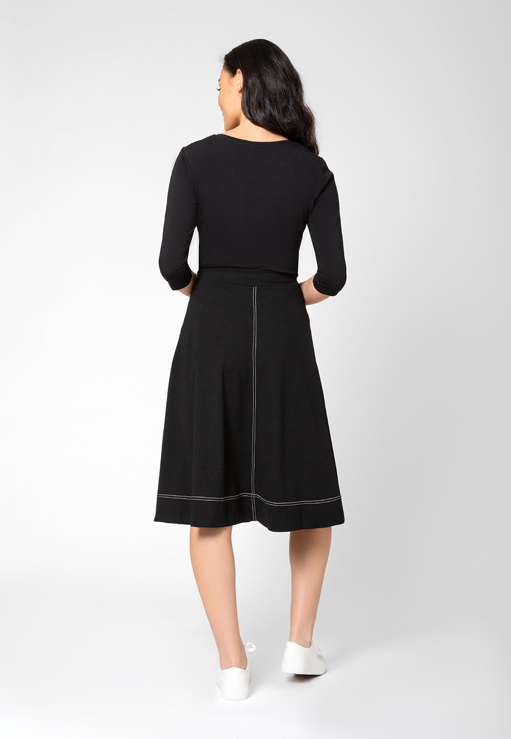 The fan-favorite Mindy Dress now in skirt form! Elegant| classy| and modern| the full skirt has an obi-style belt and a beautiful sweep. Did we mention| also super comfortable and machine washable? We have a winner! With a bit more structure| our Moss Crepe takes wash-and-wear to the next level.| Midi length