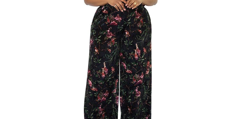 A darkly romantic floral print covers this trendy wide-leg jumpsuit made from soft knit velvet with a surplice V-neckline and handy pockets at the waist| Surplice V-neck Short sleeves 94% polyester| 6% spandex Machine wash| tumble dry Imported