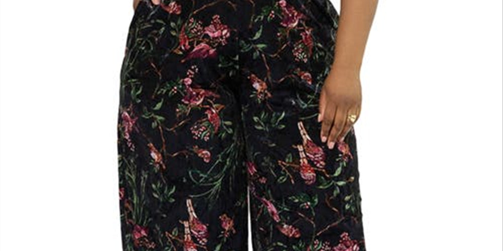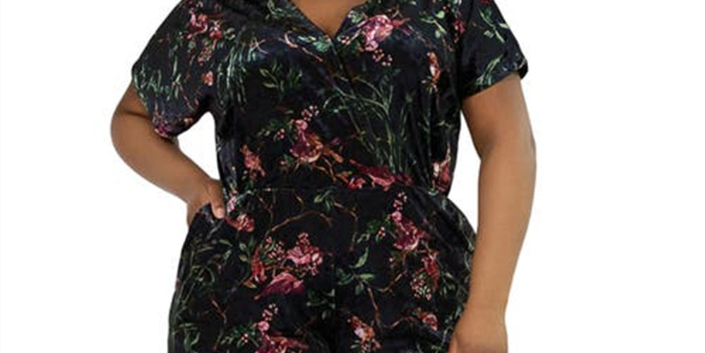 Leota Women's Ruby Floral Stretch Velvet Jumpsuit Green Size 2X