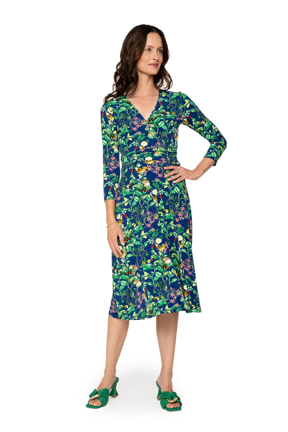 Leota's Women Amiya 3/4 Sleeve Midi Butterfly Meadow Navy