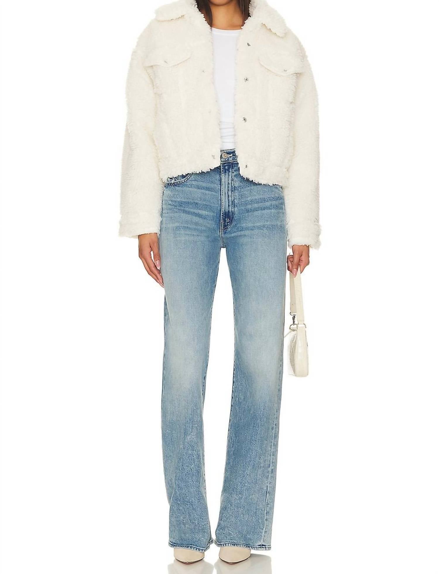 Colder weather means jacket season and we are loving everything about this timeless teddy jacket. This Baby Bubble Sherpa Trucker Jacket is Cozy and cropped. Crafted with a slightly cropped, bubble fit and a sherpa design. 100% polyester