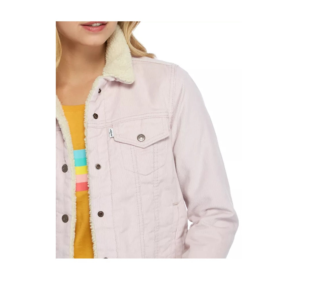 Levi's keeps you cozy all season long in the Hush Violet Trucker Jacket| Made from a corduroy fabric| this trucker jacket features a sherpa lining| long sleeves| collar with snap-button front closure| button-flap chest pockets| and side pockets